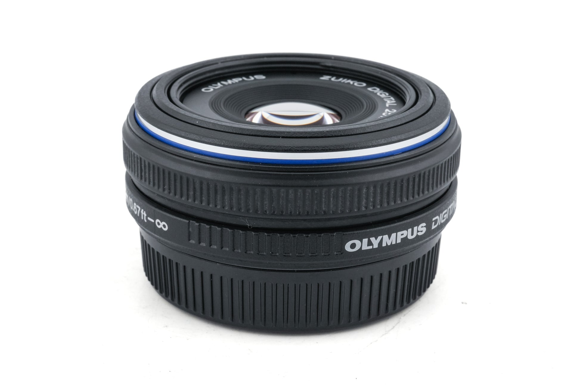 Autofocus normal lens made for Four Thirds mount DSLR cameras by Olympus introduced in 2008. It has a 50mm equivalent focal length on full frame. Metal and plastic body available in black.