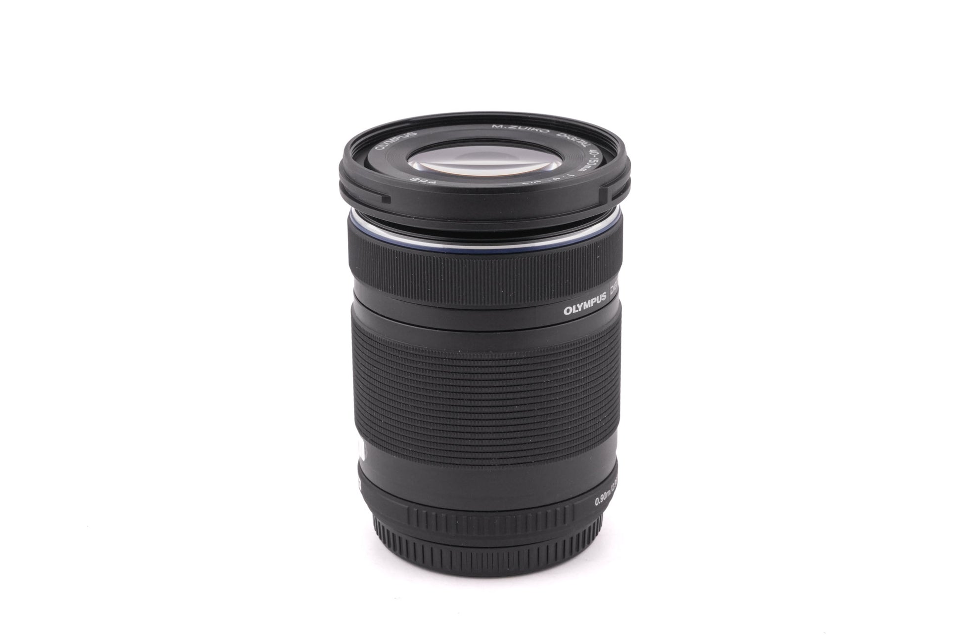 Autofocus telephoto zoom lens made for Micro Four Thirds mount mirrorless digital cameras by Olympus. It gives the equivalent field of view to an 80-300mm lens on full frame / 35mm. Plastic body available in black and silver.