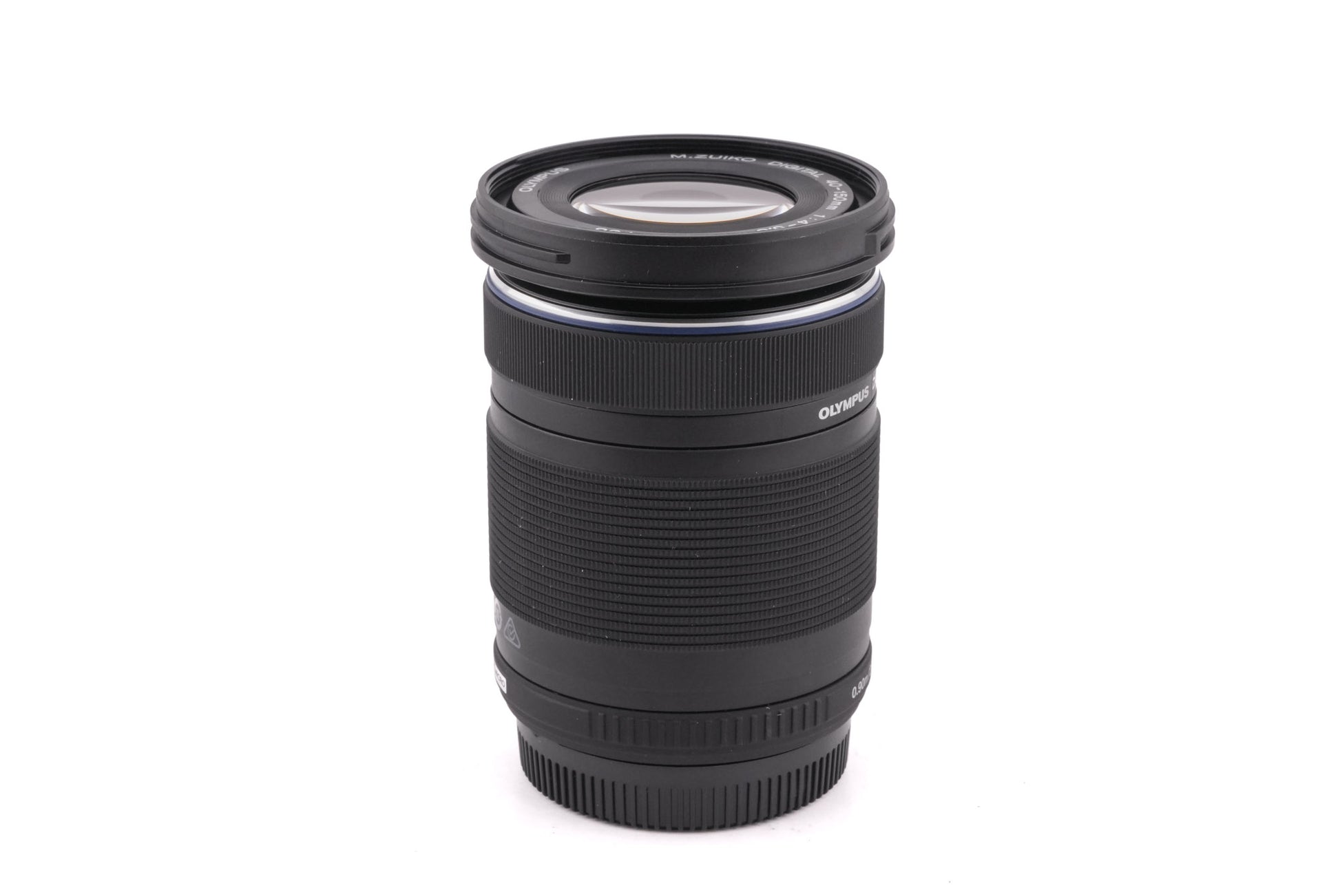 Autofocus telephoto zoom lens made for Micro Four Thirds mount mirrorless digital cameras by Olympus. It gives the equivalent field of view to an 80-300mm lens on full frame / 35mm. Plastic body available in black and silver.
