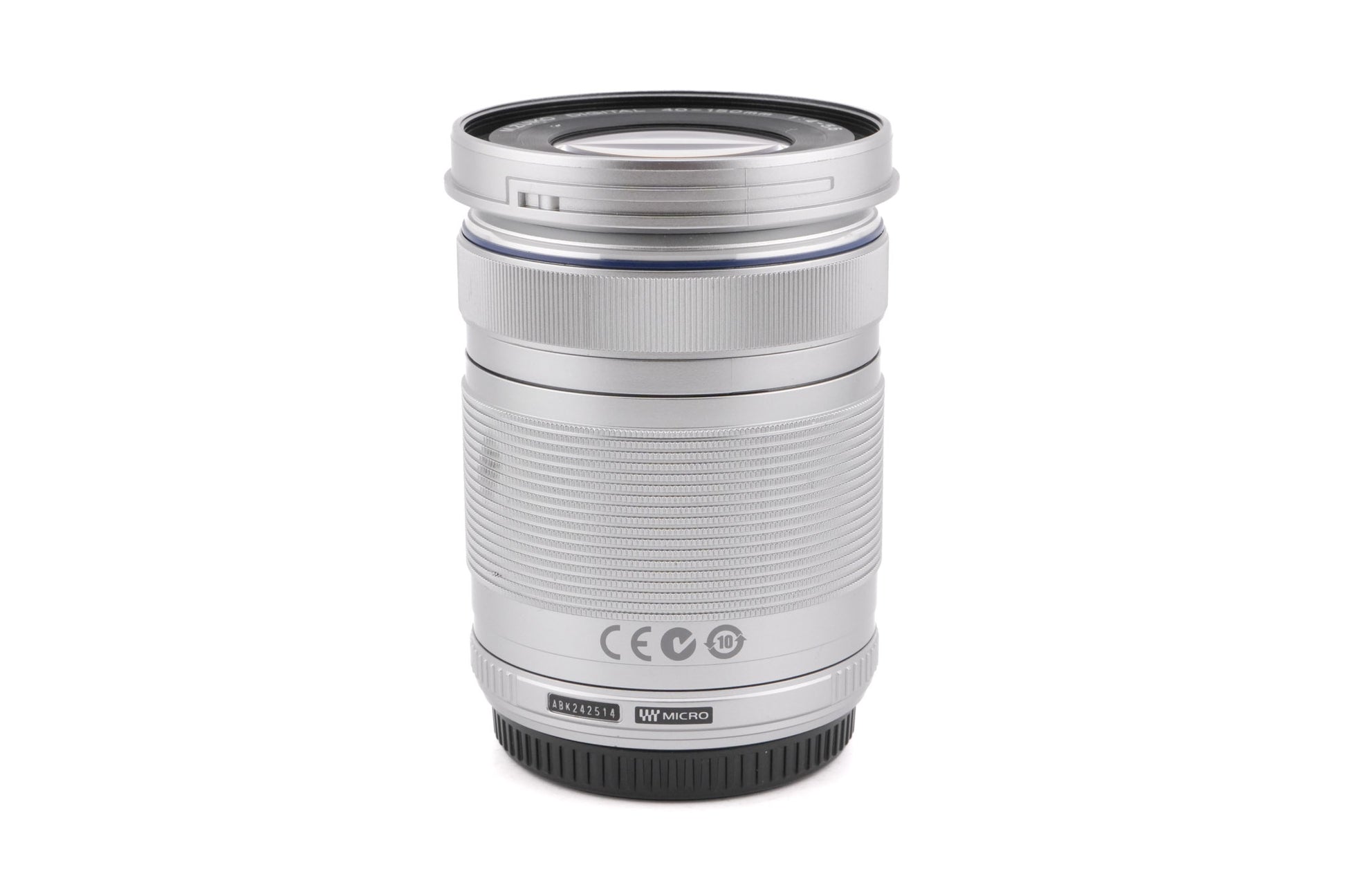 Autofocus telephoto zoom lens made for Micro Four Thirds mount mirrorless digital cameras by Olympus. It gives the equivalent field of view to an 80-300mm lens on full frame / 35mm. Plastic body available in black and silver.