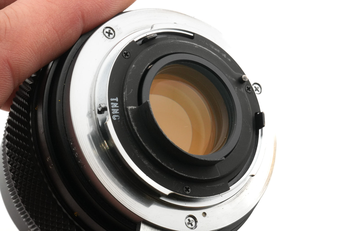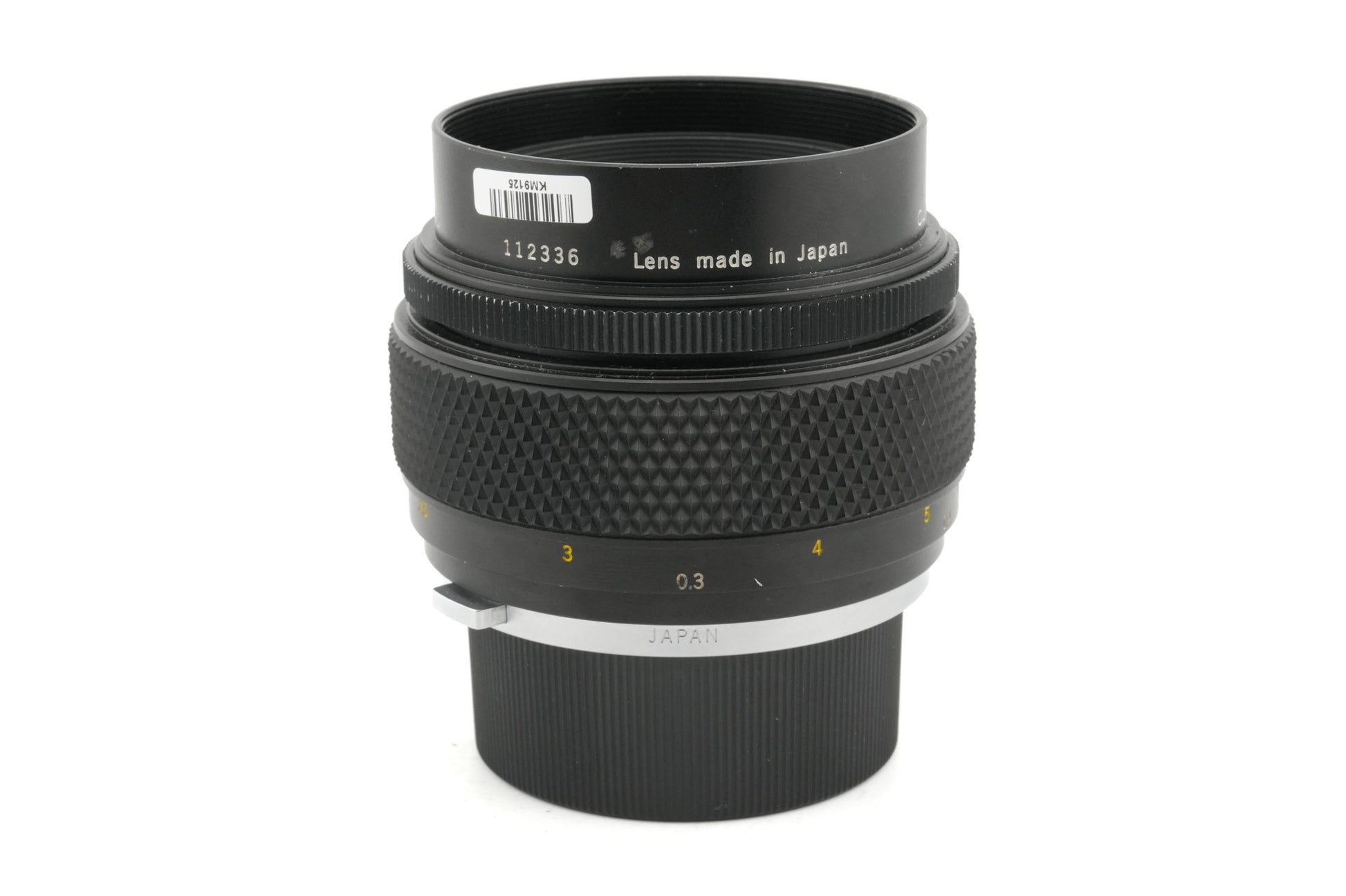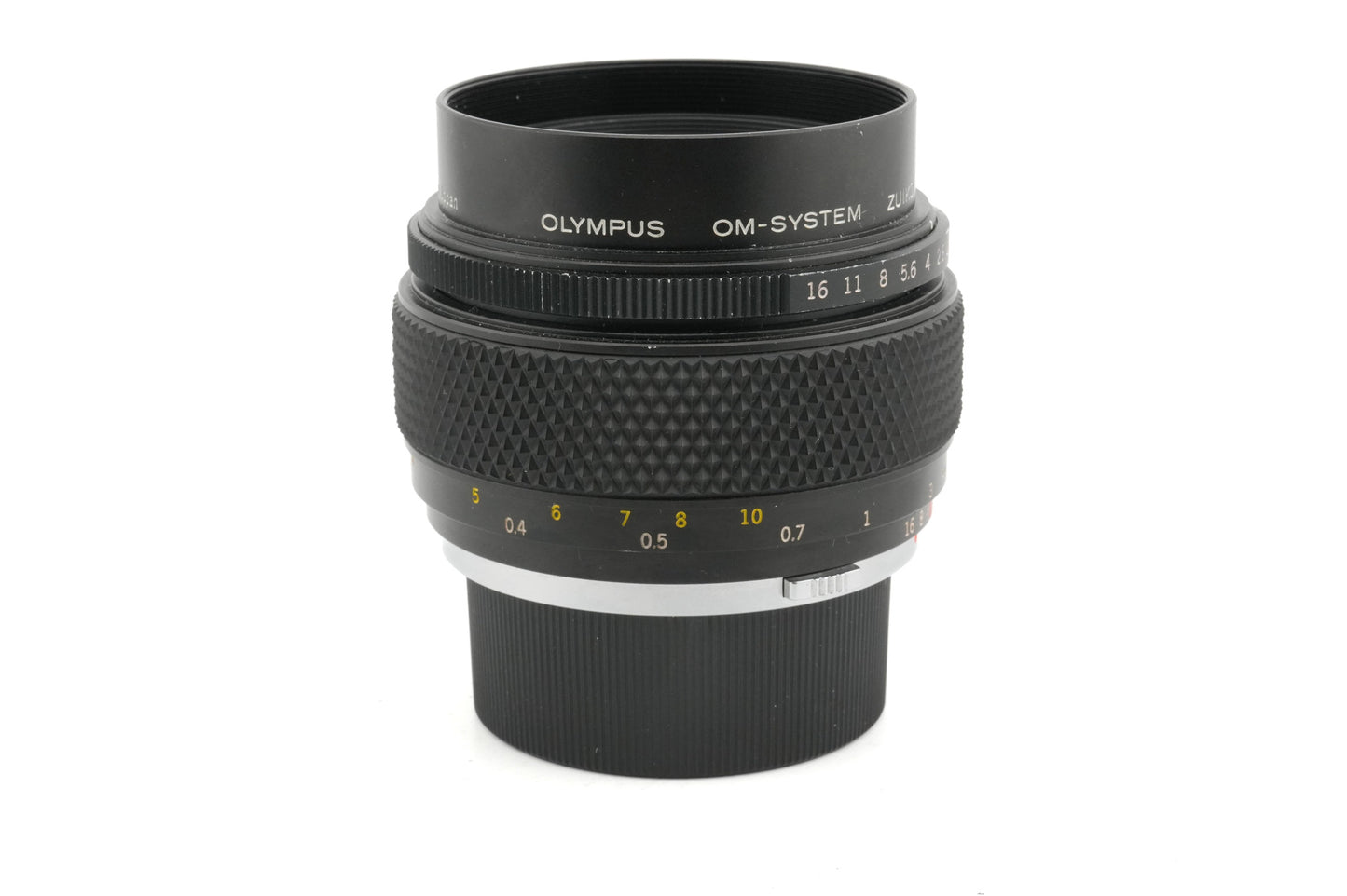 Manual focus normal macro lens made for OM-mount 35mm SLR cameras introduced by Olympus. It has a 1:2 reproduction ratio. Metal body available in black.