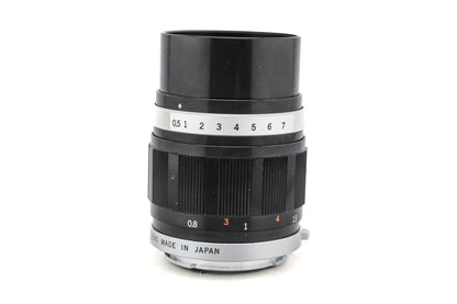 Manual focus telephoto lens made for PEN F half frame 35mm SLR cameras by Olympus starting in 1963. It gives the equivalent field of view to a 100mm lens on full frame/35mm. Metal body available in black.