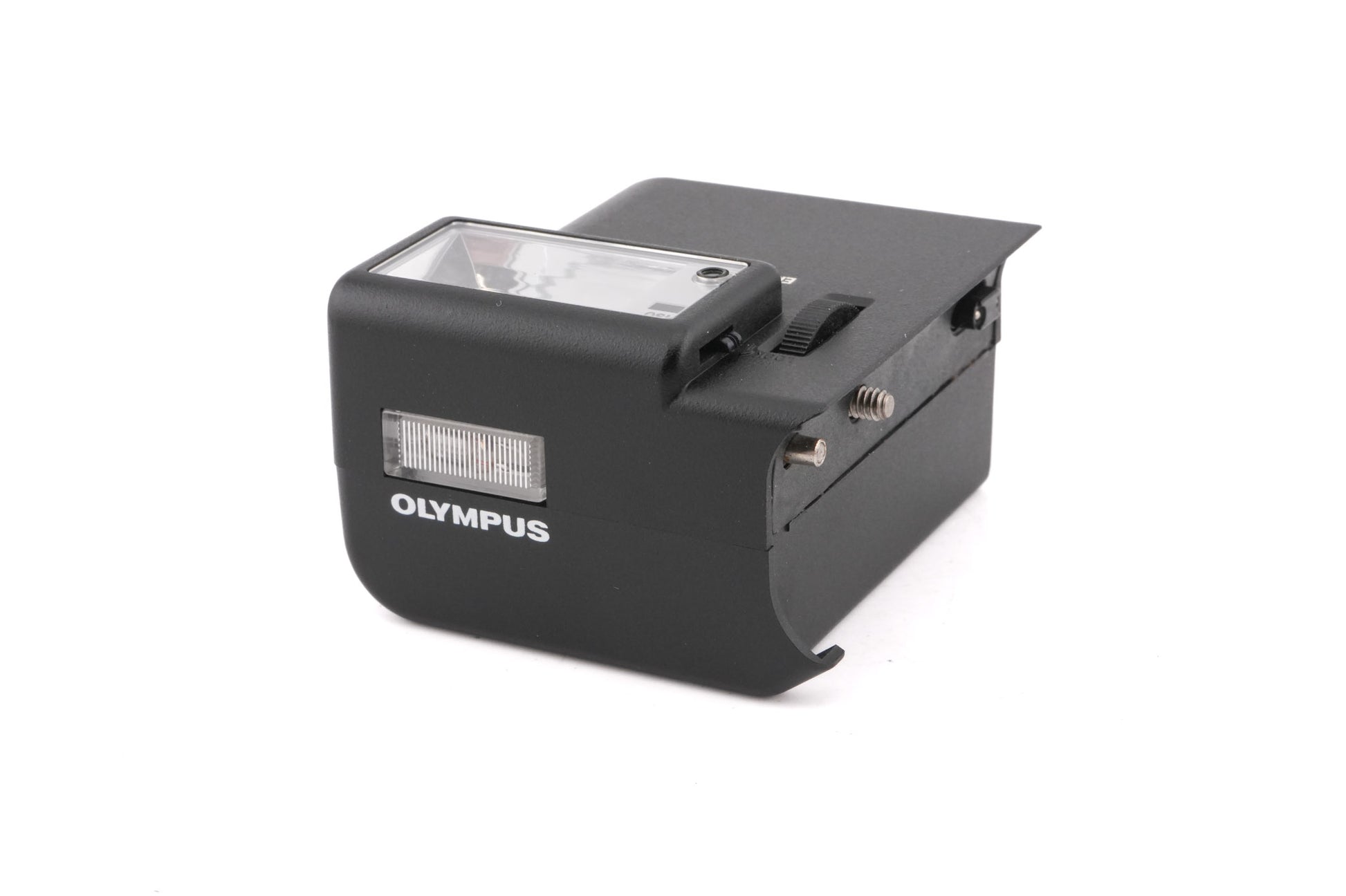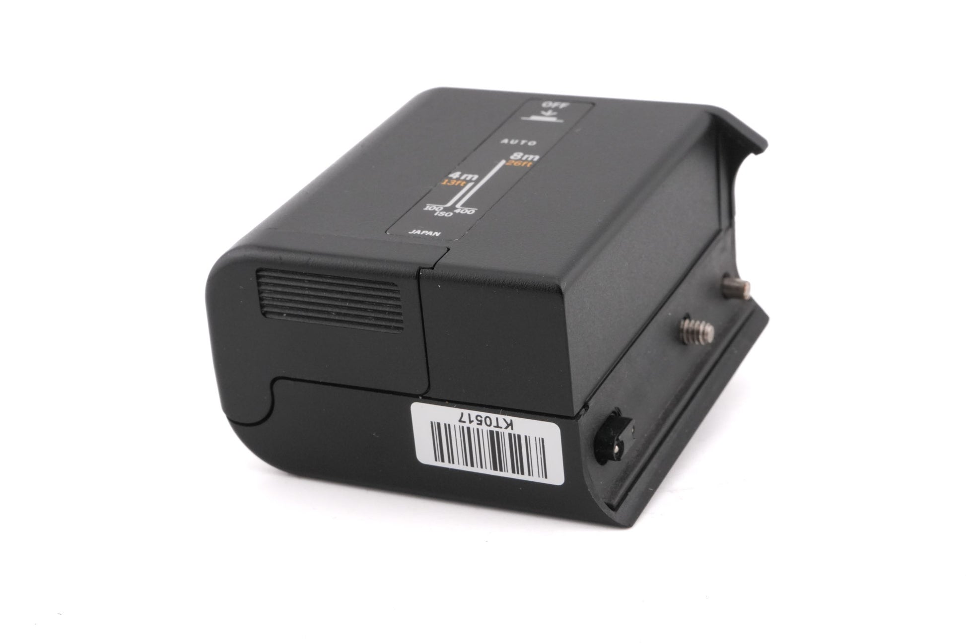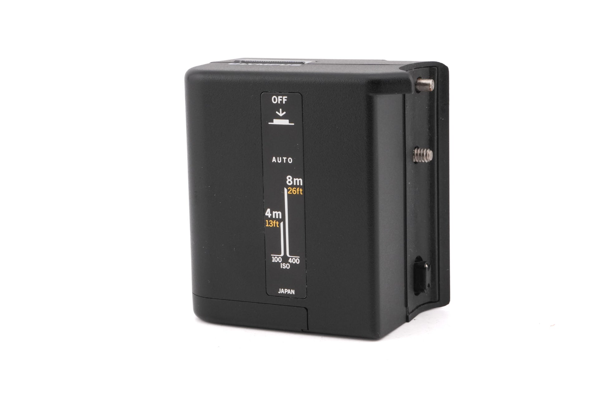 Electronic flash made for the Olympus XA series of cameras made by Olympus. A more powerful version of the more common A11 flash. It also uses two AA batteries instead of one. Plastic body available in black.