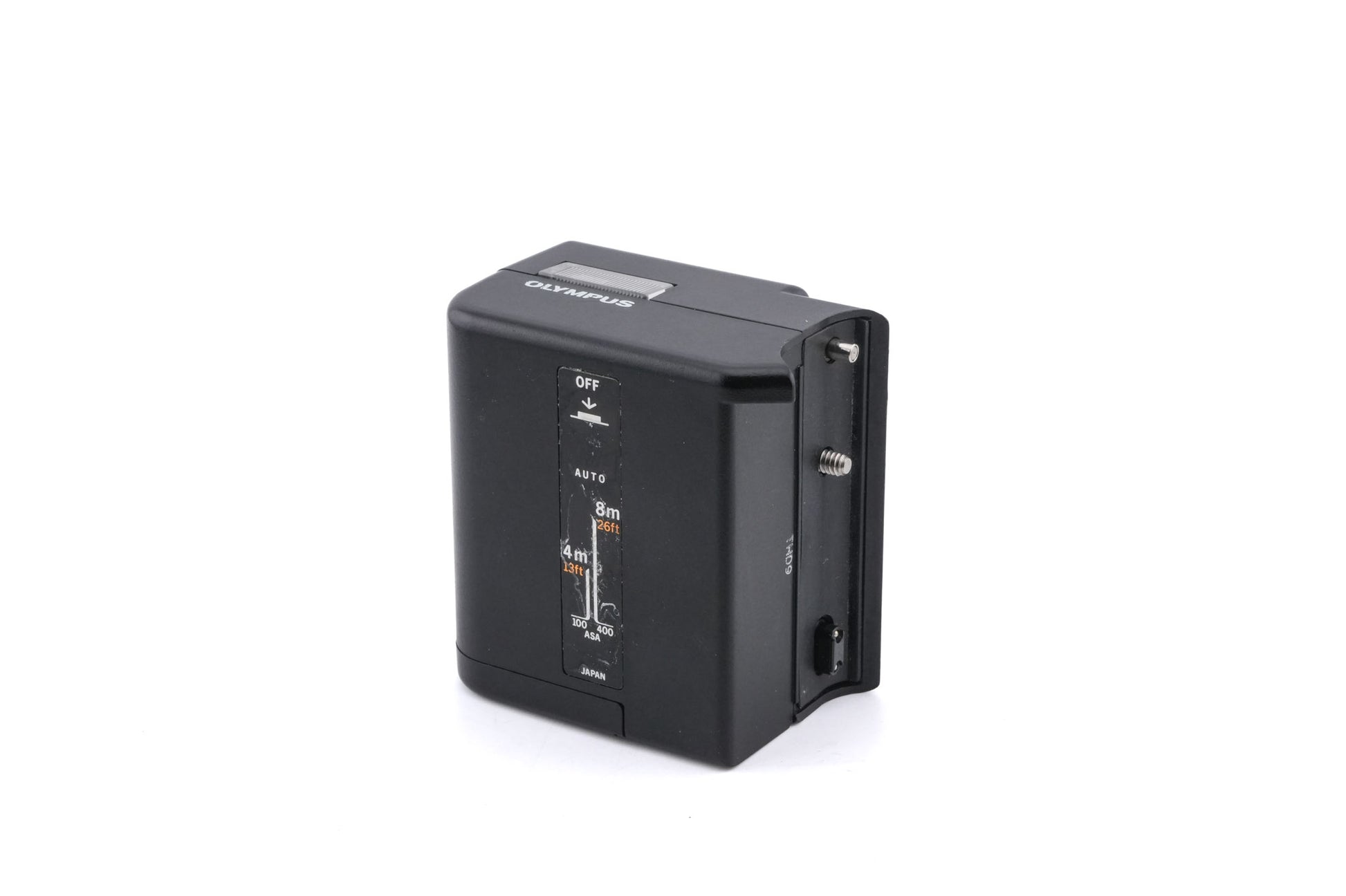 Electronic flash made for the Olympus XA series of cameras made by Olympus. A more powerful version of the more common A11 flash. It also uses two AA batteries instead of one. Plastic body available in black.