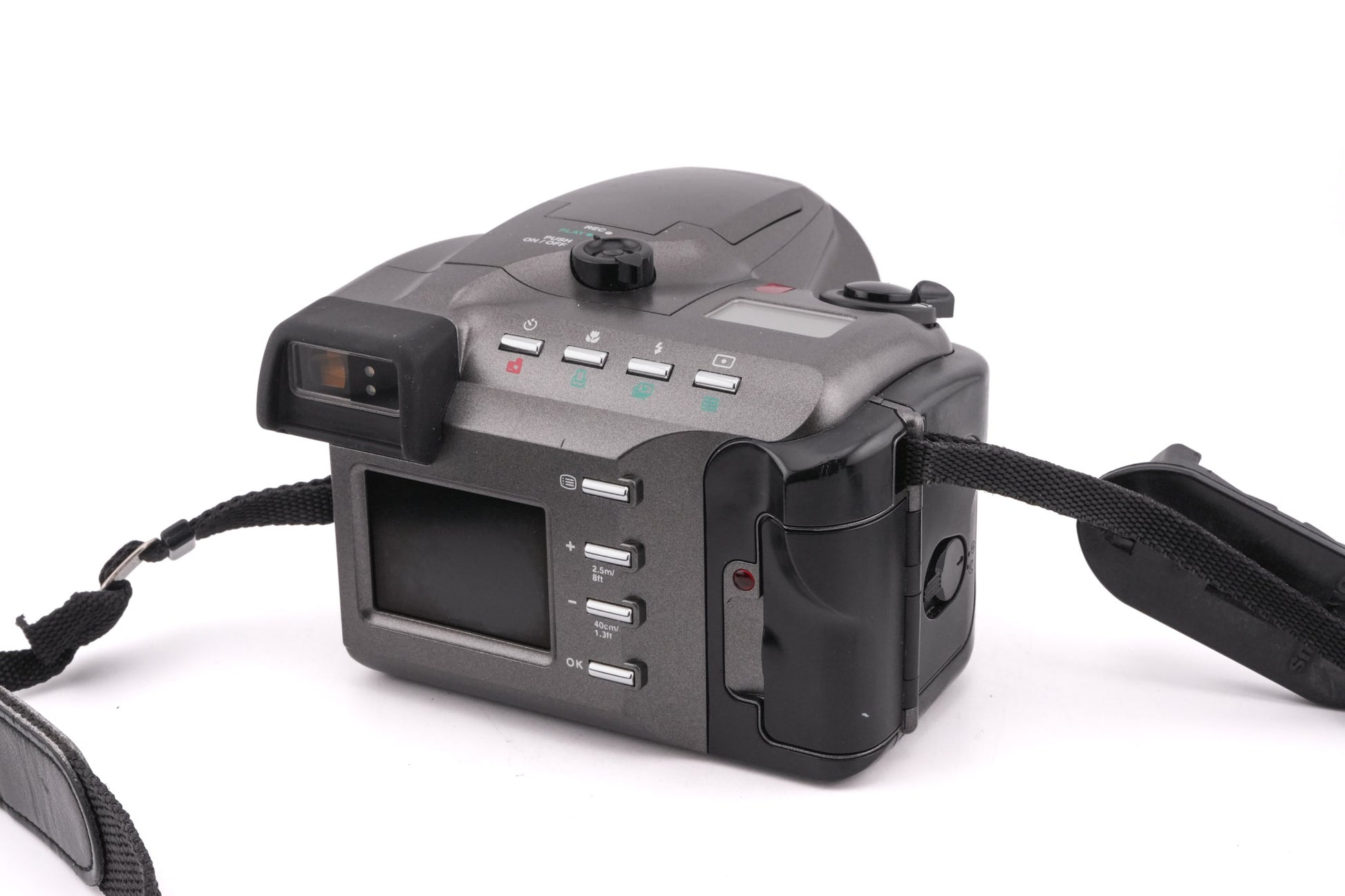 Autofocus digital bridge-style camera introduced by Olympus in 1997. The camera cost 1299 dollars when it was announced, which is equivalent to 2622 dollars in 2025. Plastic body available in grey.