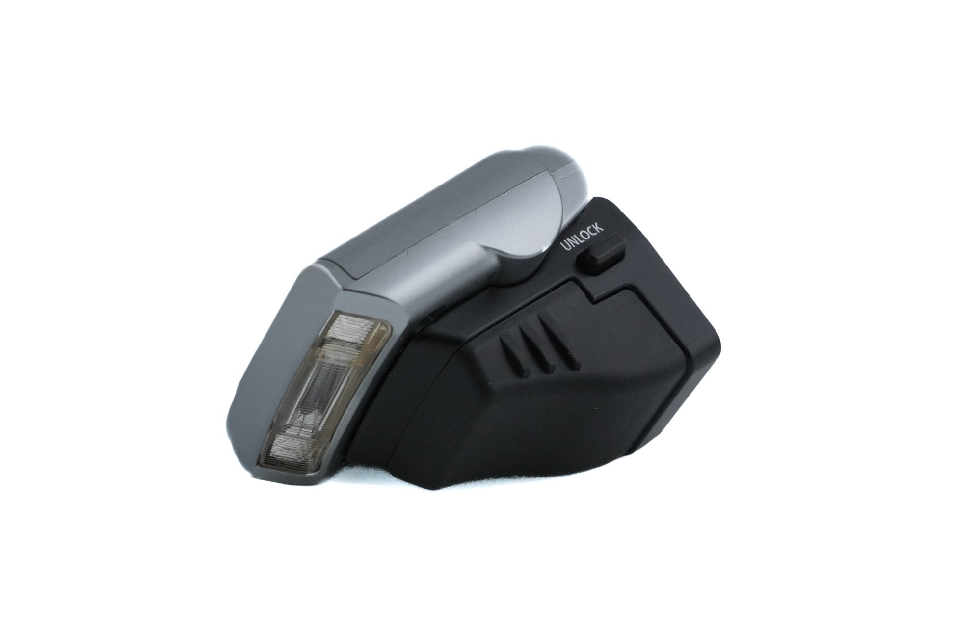 Small-sized flash unit made by Olympus. Plastic body available in silver.