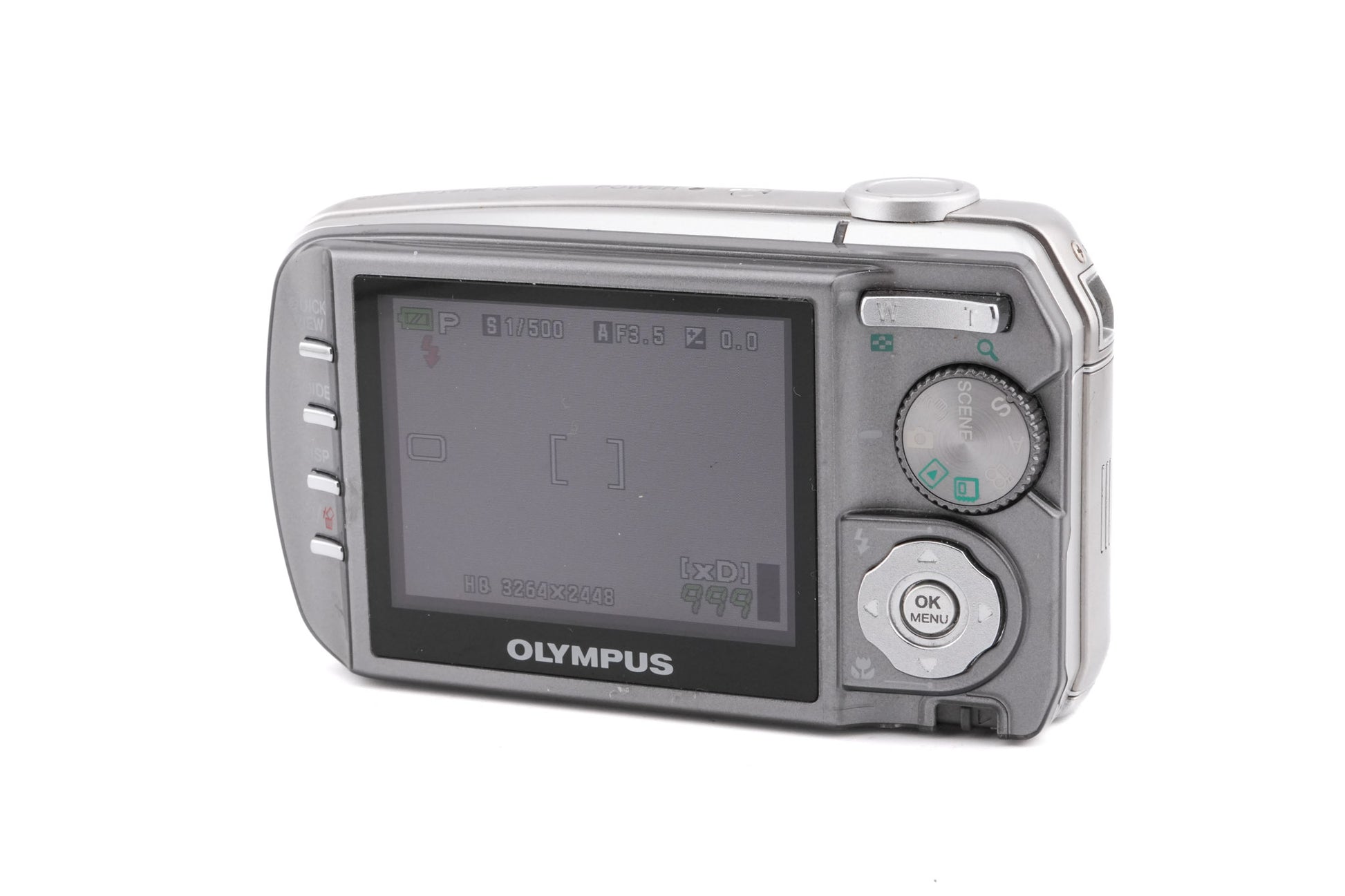 Autofocus point & shoot digital camera released by Olympus in 2005. Uses Olympus XD cards. Gives the equivalent focal length of 38-114mm. Plastic body available in silver.