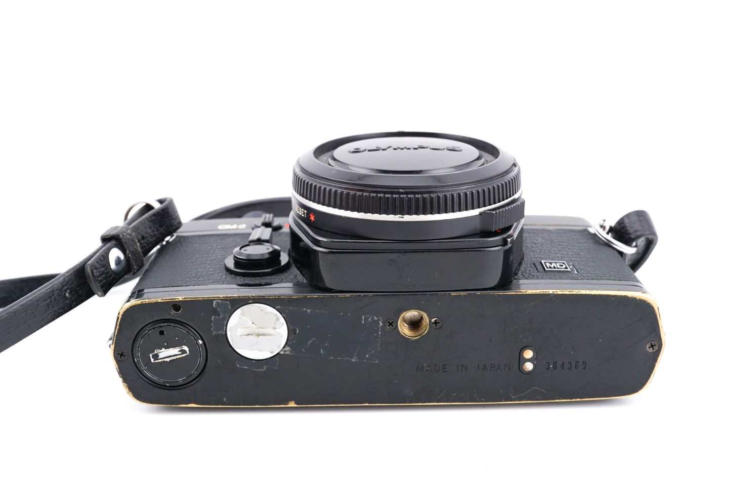 Manual focus 35mm OM-mount SLR camera released by Olympus in 1979. This model added support for attachable motor winders (Motor Drive 1 (or the later Motor Drive 2). This allows the film to advance at a speed of 5fps. Features aperture priority and full manual exposure modes. Also has a self-timer and +/- 2 stops of exposure compensation. Metal body available in silver & black.