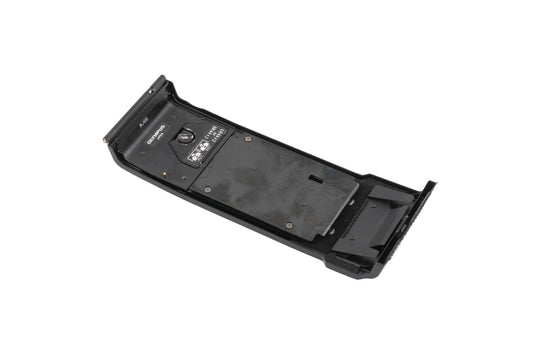 Databack made by Olympus for their OM single digit (OM-1, 2, 3, and 4) SLRs. This version does not work with non-n OM-1 and OM-2 bodies. Only the OM-1n and the OM-2n are supported along with all OM-3 and 4 models. Allows the printing of data (dates, codes, etc.) onto the film. Black metal construction.