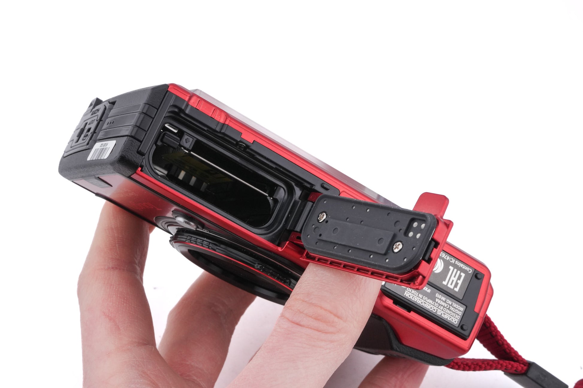 Autofocus compact camera made by Olympus. It is shock, weather, and waterproof up to 15m deep. Plastic body available in black and red.