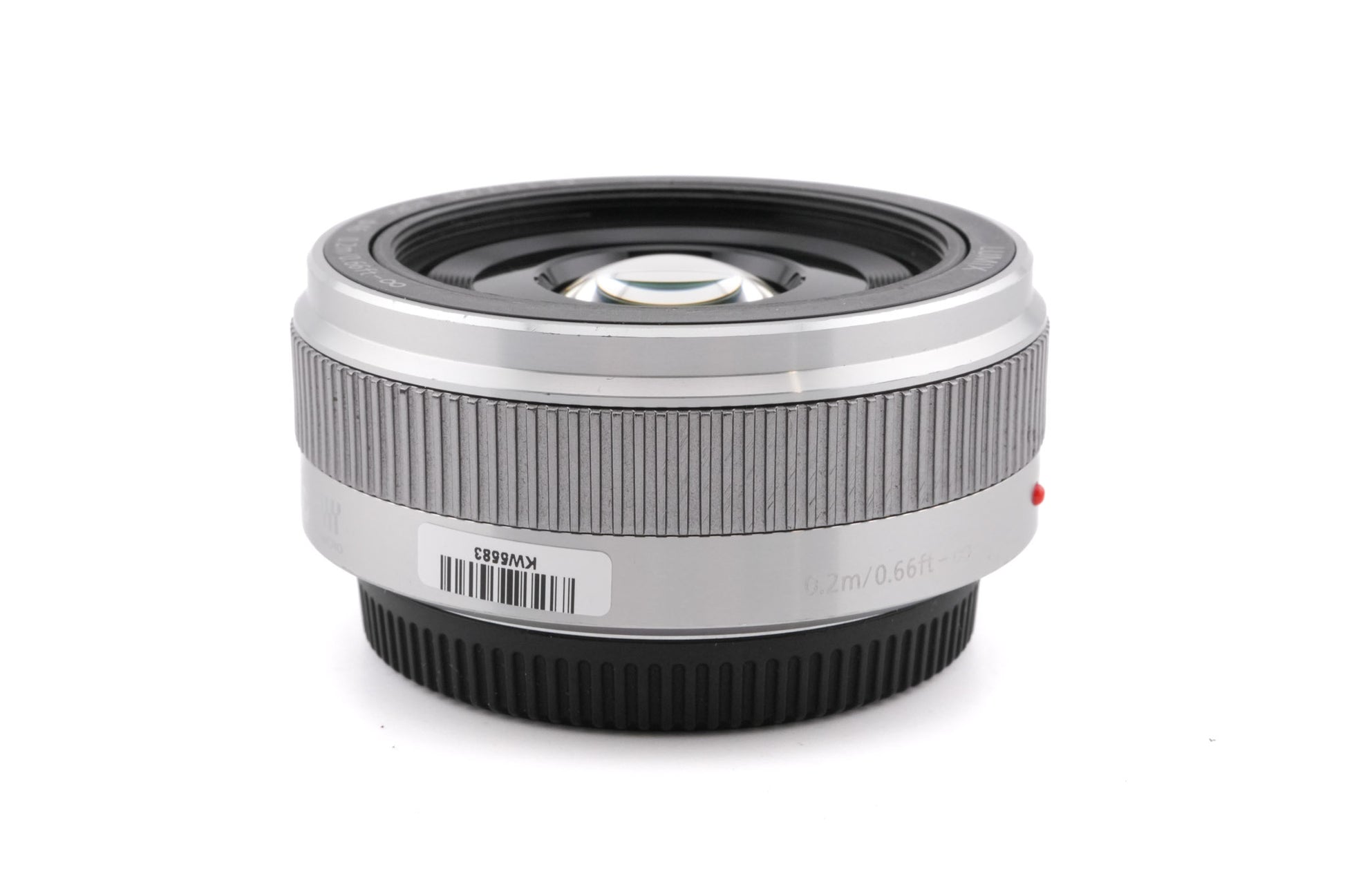 Autofocus normal lens made for Micro Four Thirds mount digital mirrorless cameras by Panasonic. It is designed for Micro Four Thirds-sized sensors and gives the equivalent field of view to a 40mm lens on full frame/35mm. Metal and plastic body available in silver, black, and grey.