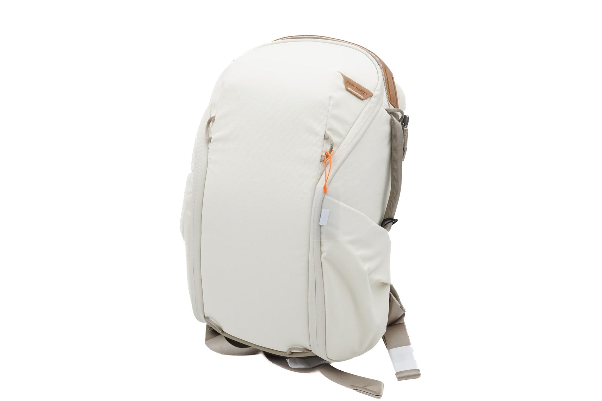 Backpack for camera bodies and lenses made by Peak Design. Weatherproof fabric construction available in white, black, and blue.