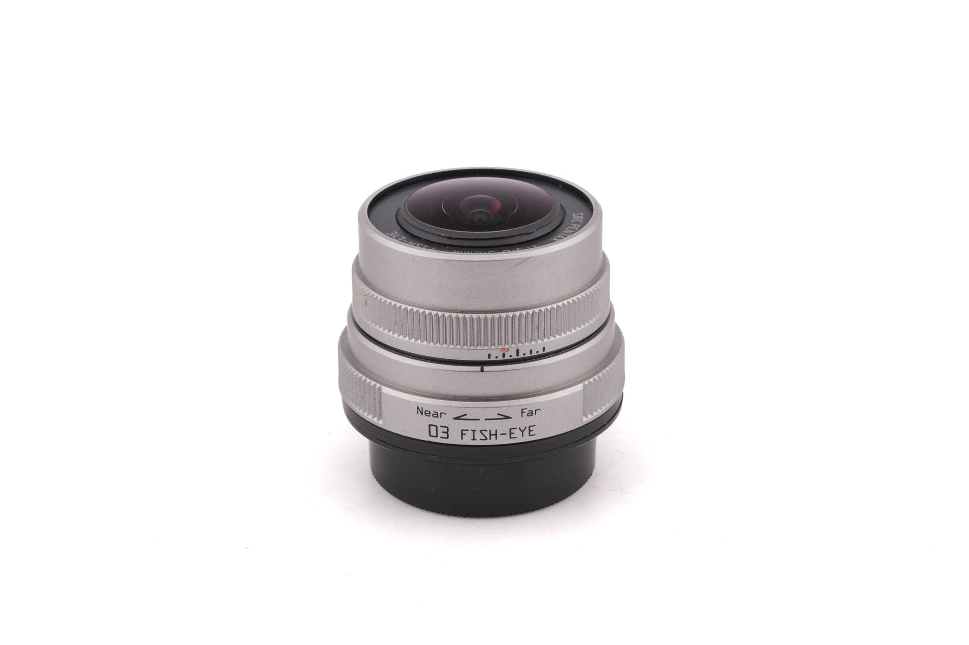 Autofocus fish eye lens made for Q-mount mirrorless cameras introduced by Pentax. It's referred to as 03 Fish-Eye in the Q system. Plastic body available in silver.