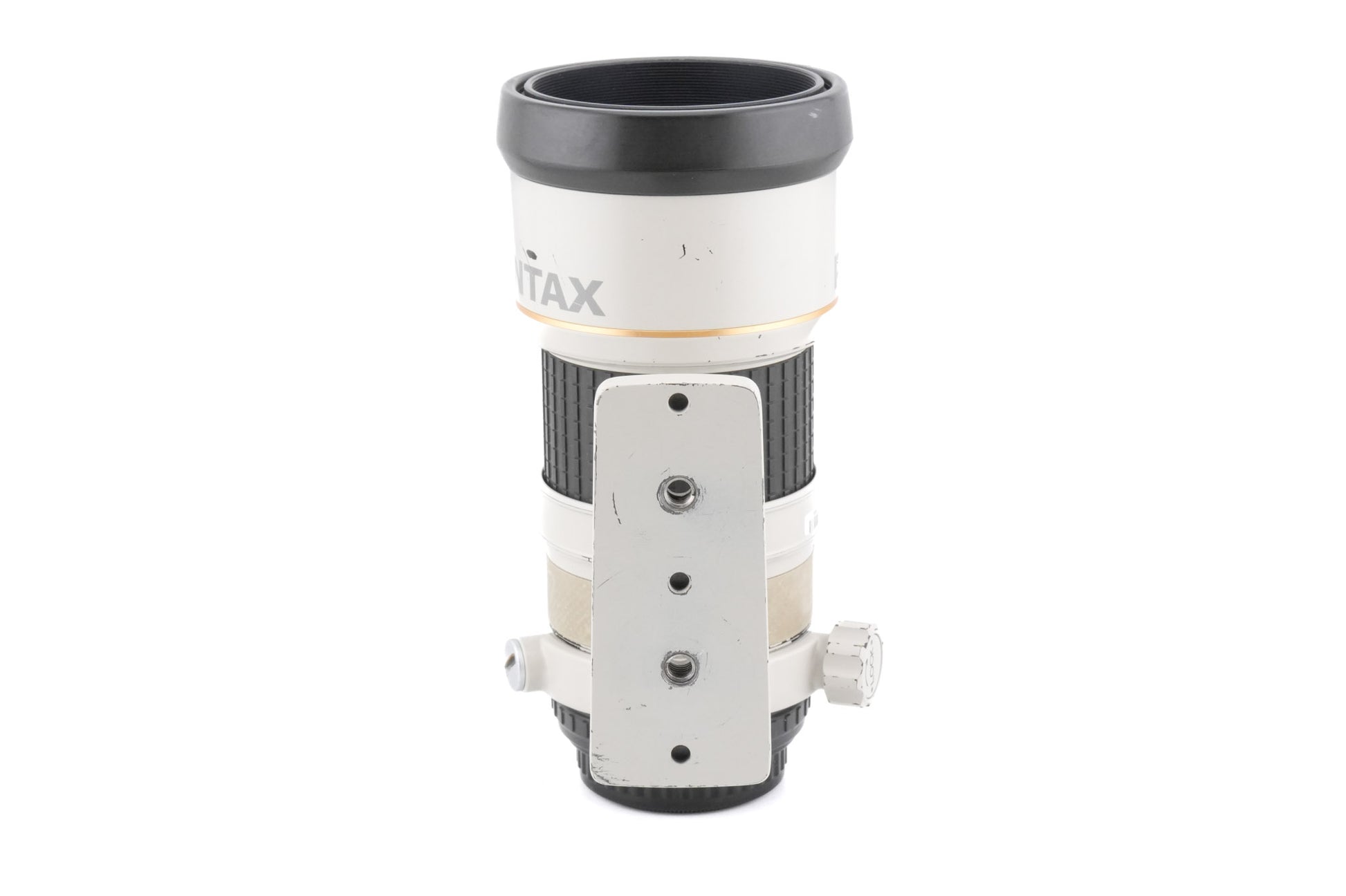 Autofocus telephoto lens made for K-mount DSLR/SLR cameras introduced by Pentax in 1991. Metal body available in white.
