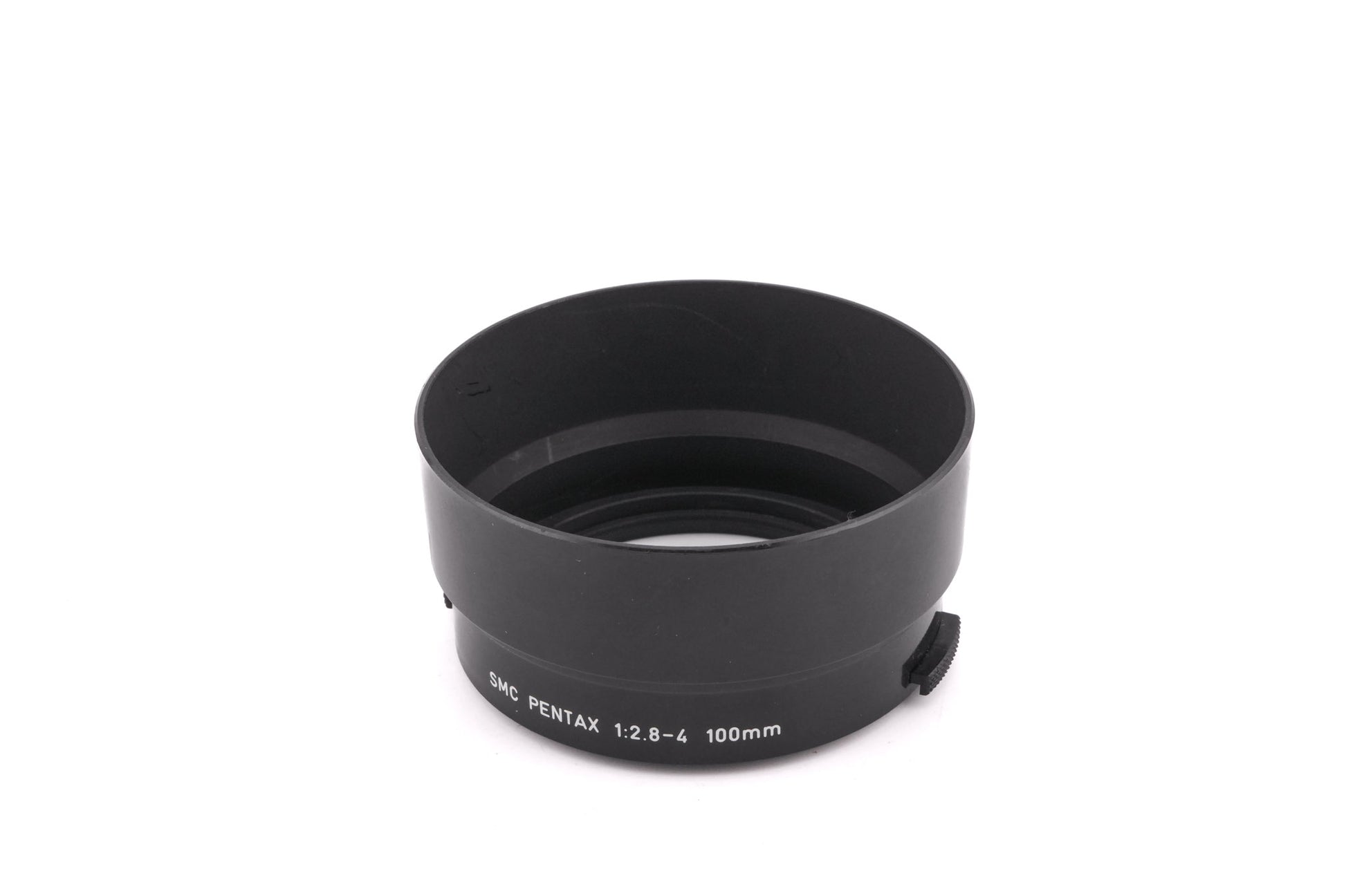 Lens hood made by Pentax for 100mm f2.8-4 SMC lenses. It attaches via a clamp. Plastic body available in black.