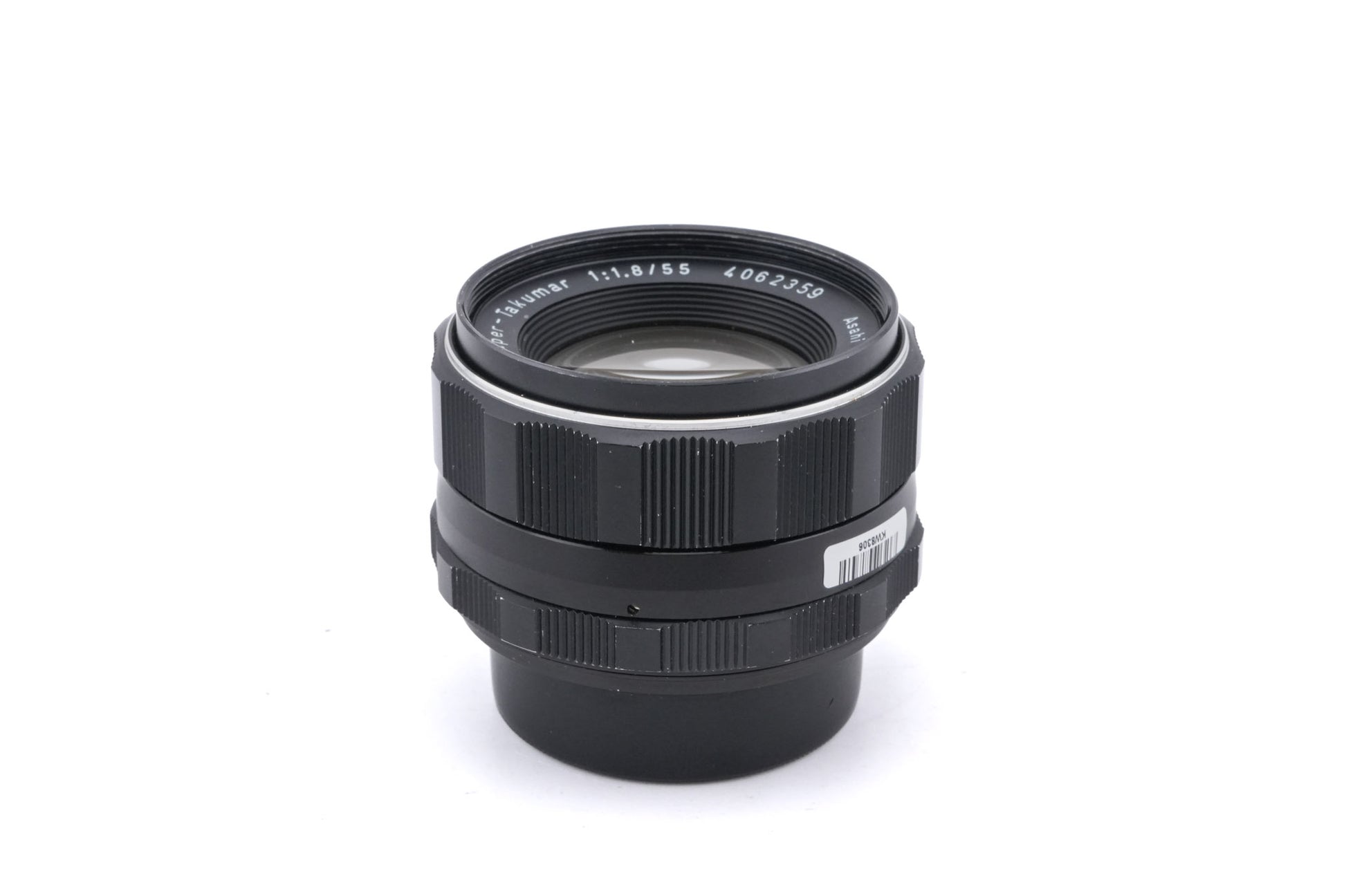 Manual focus normal lens made for M42 screw mount 35mm SLR cameras introduced by Pentax. There were a few variants of this lens that were mostly aesthetic changes. Early versions had the aperture ring reversed, with f1.8 on the left side. Later versions had a different aperture ring with scalloped edges, more like the focus ring. Metal body available in black.