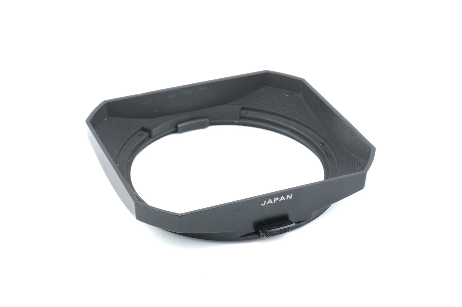 Square lens hood for Pentax 45mm f4 lens. Attaches via a clamp on system to filter threads. Fits most lenses with 82mm filter threads. Plastic construction in black.