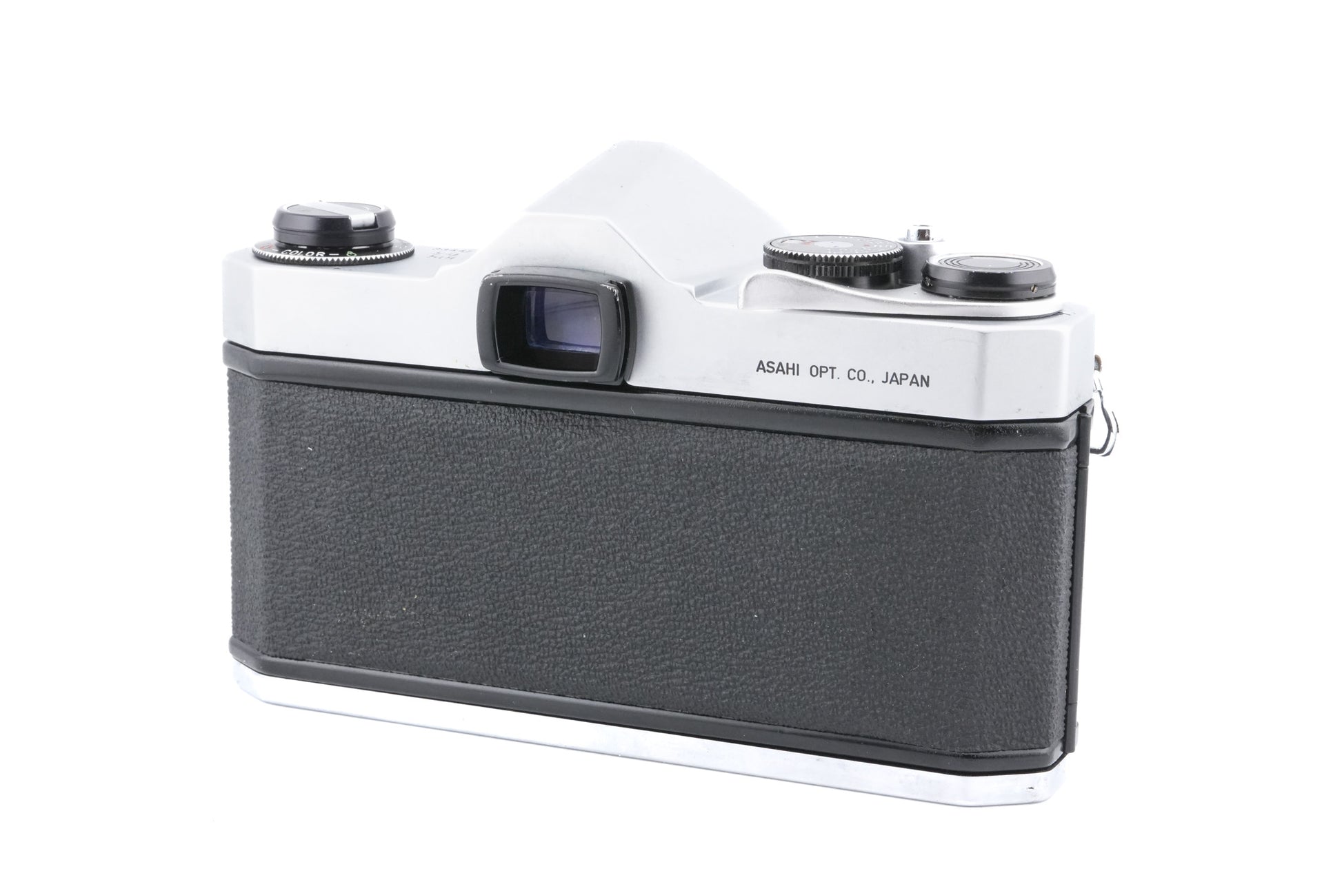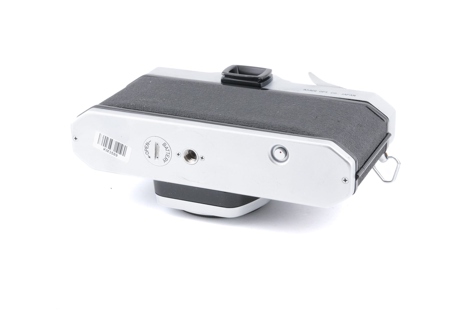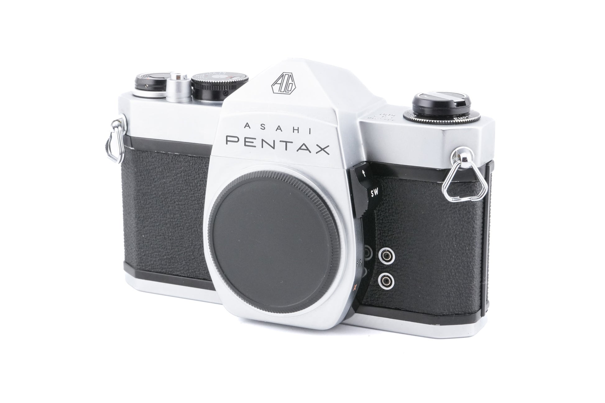 Manual focus M42 mount 35mm SLR released by Pentax in 1971. It is virtually identical to the normal SP, just without a self timer. Despite the shutter speed dial only going up to 1/500s, the camera can use 1/1000s if you rotate the dial to the empty space between 1/500s and bulb. The light meter was made to use a 1.3v mercury battery. Metal body available in silver grey.