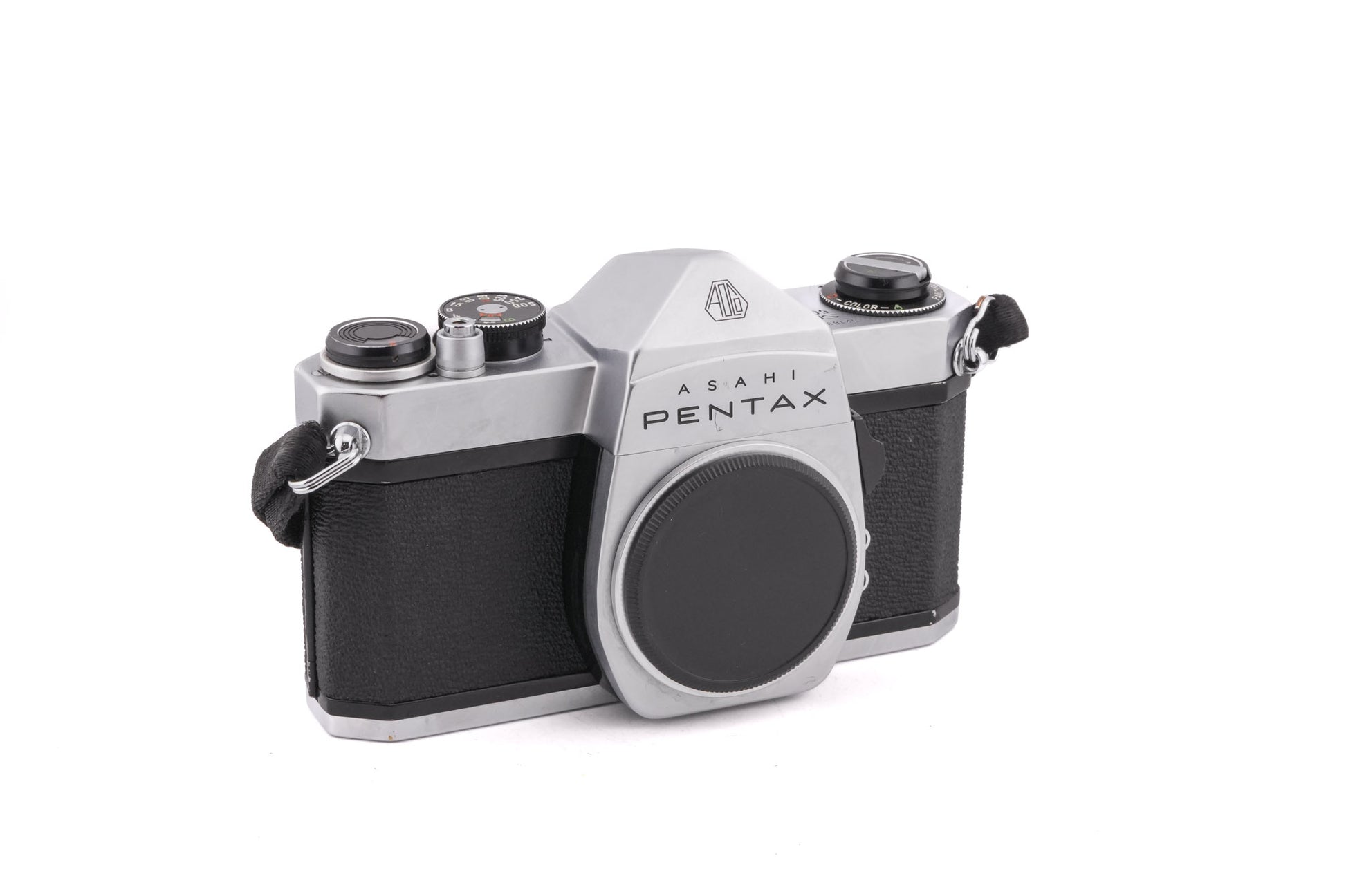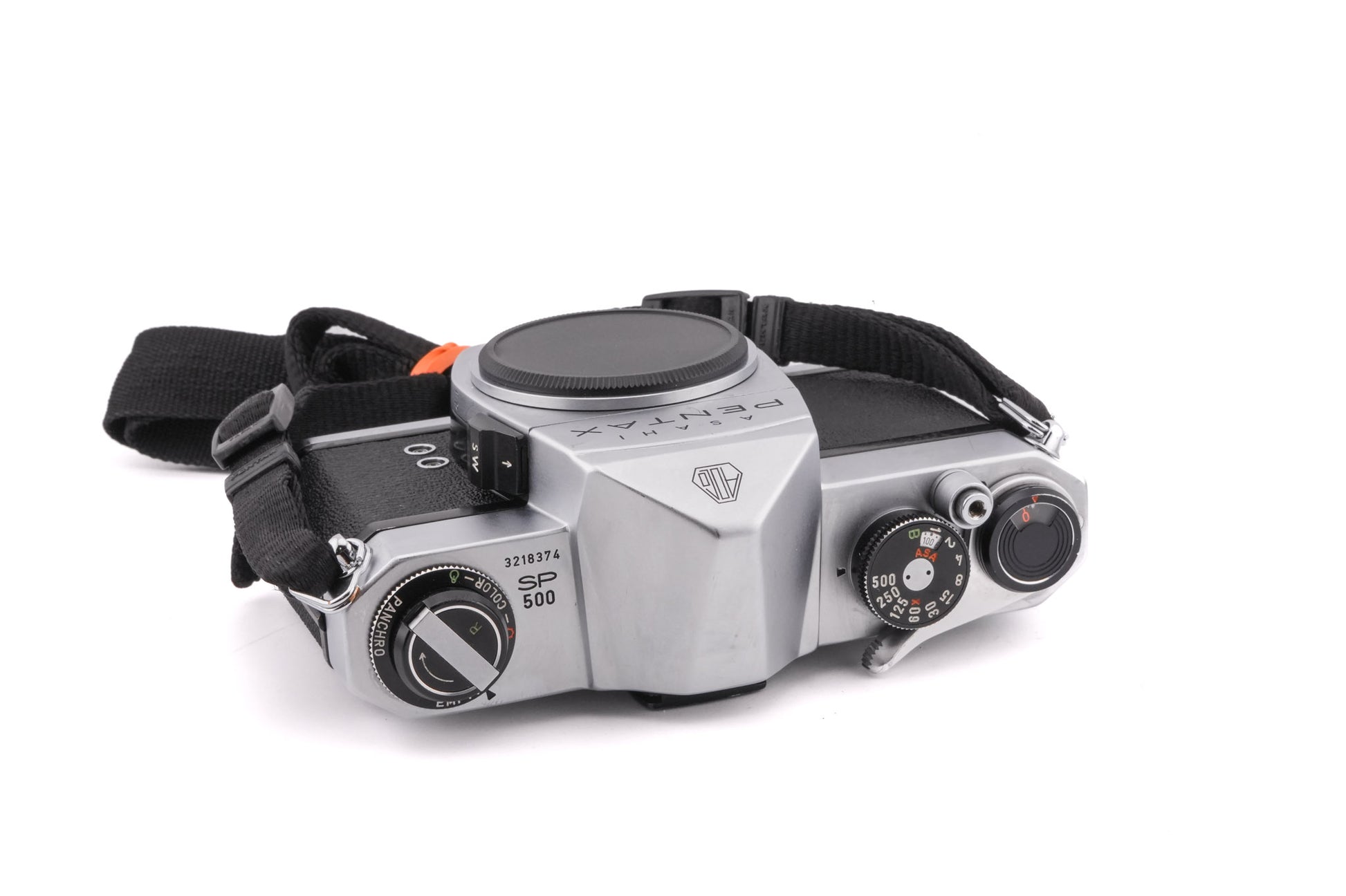 Manual focus M42 mount 35mm SLR released by Pentax in 1971. It is virtually identical to the normal SP, just without a self timer. Despite the shutter speed dial only going up to 1/500s, the camera can use 1/1000s if you rotate the dial to the empty space between 1/500s and bulb. The light meter was made to use a 1.3v mercury battery. Metal body available in silver grey.