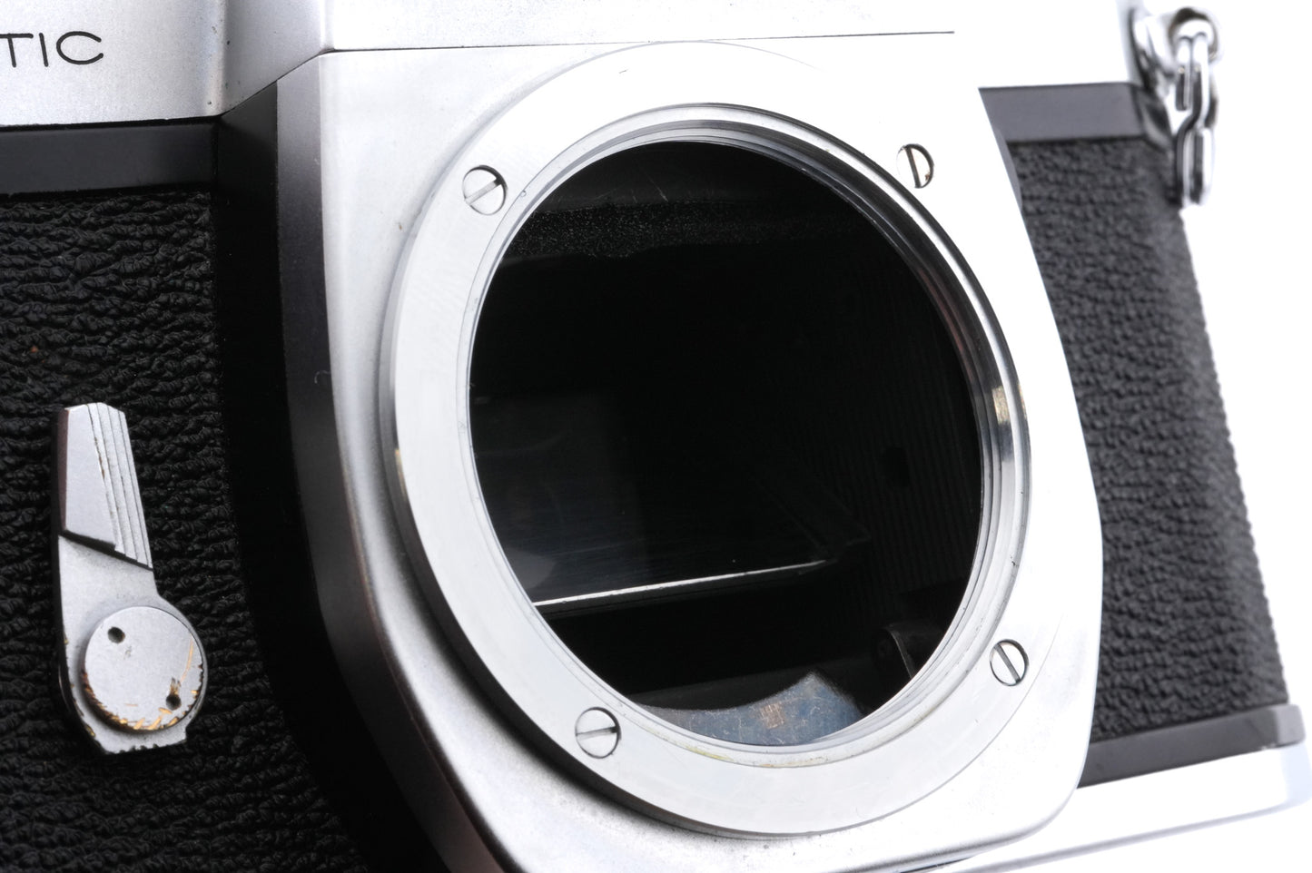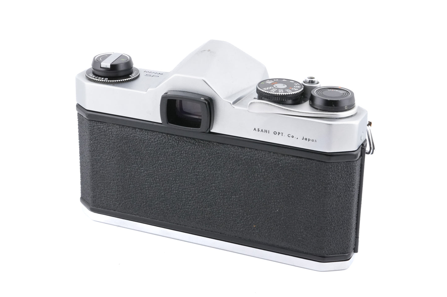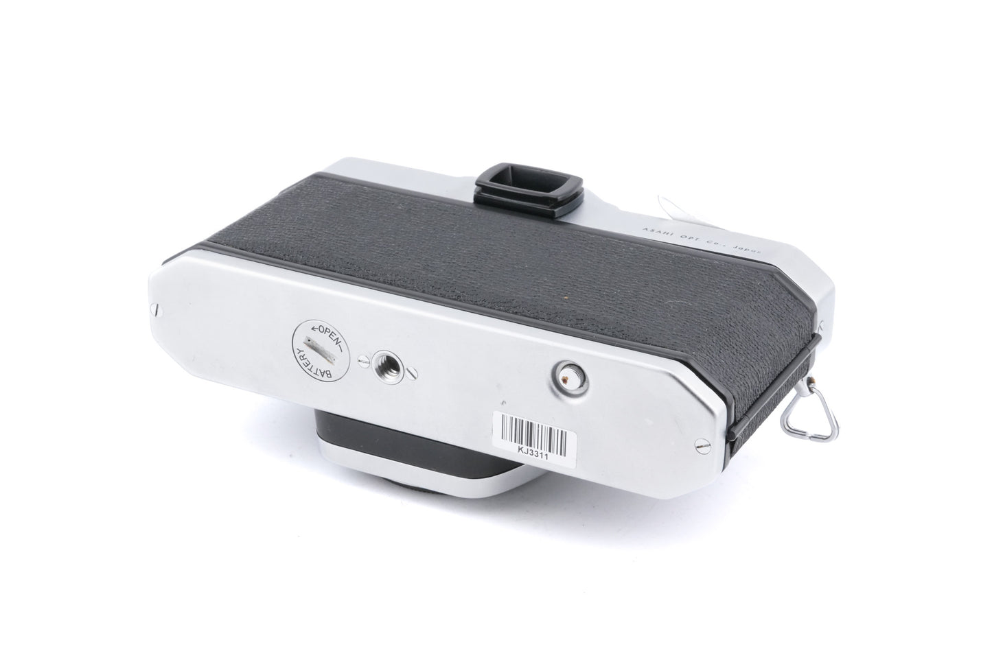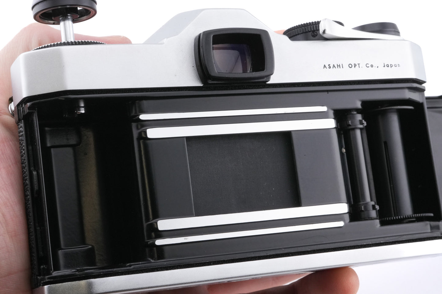 Manual focus M42 mount 35mm SLR released by Pentax. The light meter is tuned for a 1.35v PX400 mercury battery. Metal body available in silver & black.