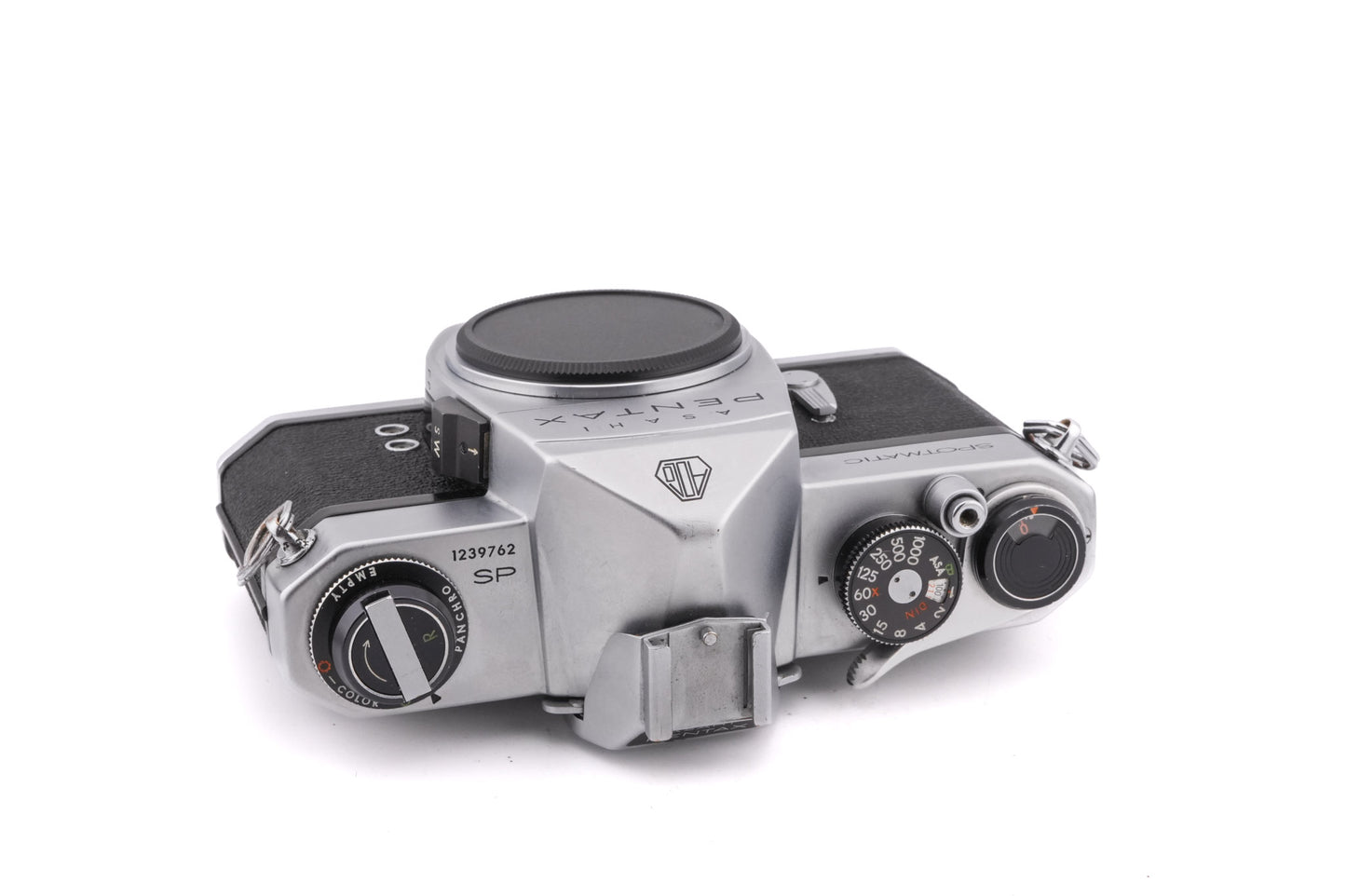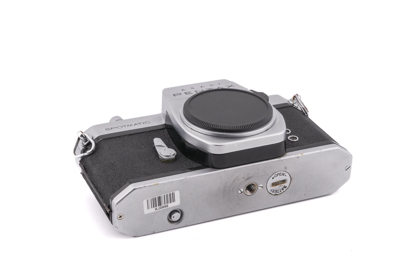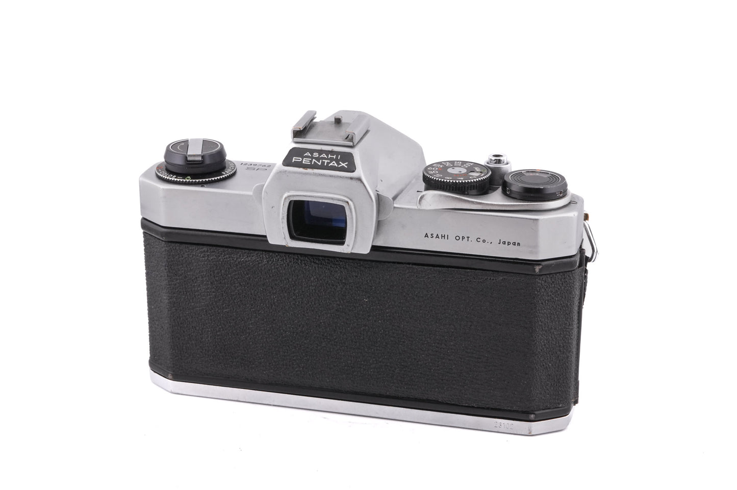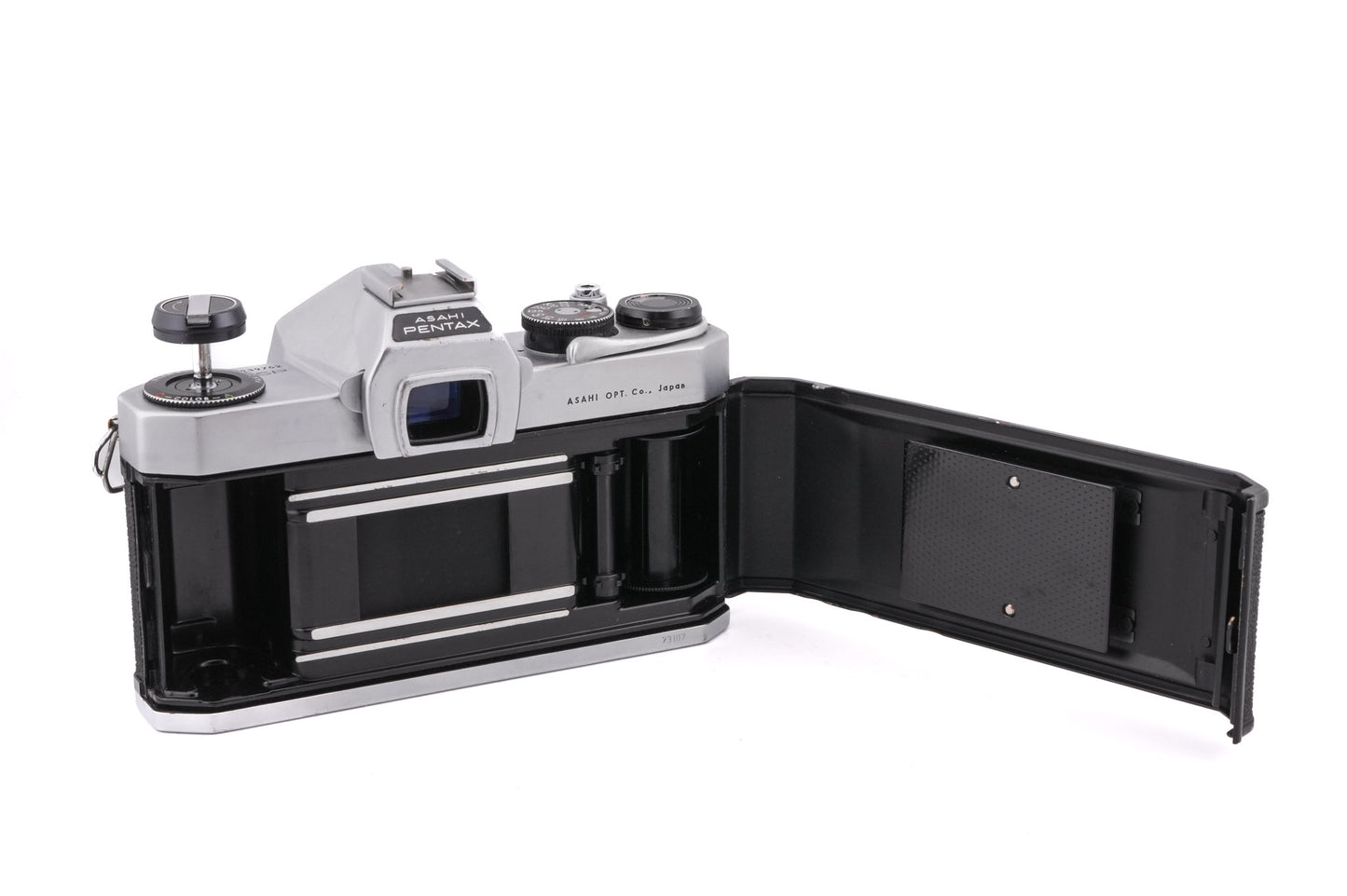 Manual focus M42 mount 35mm SLR released by Pentax. The light meter is tuned for a 1.35v PX400 mercury battery. Metal body available in silver & black.