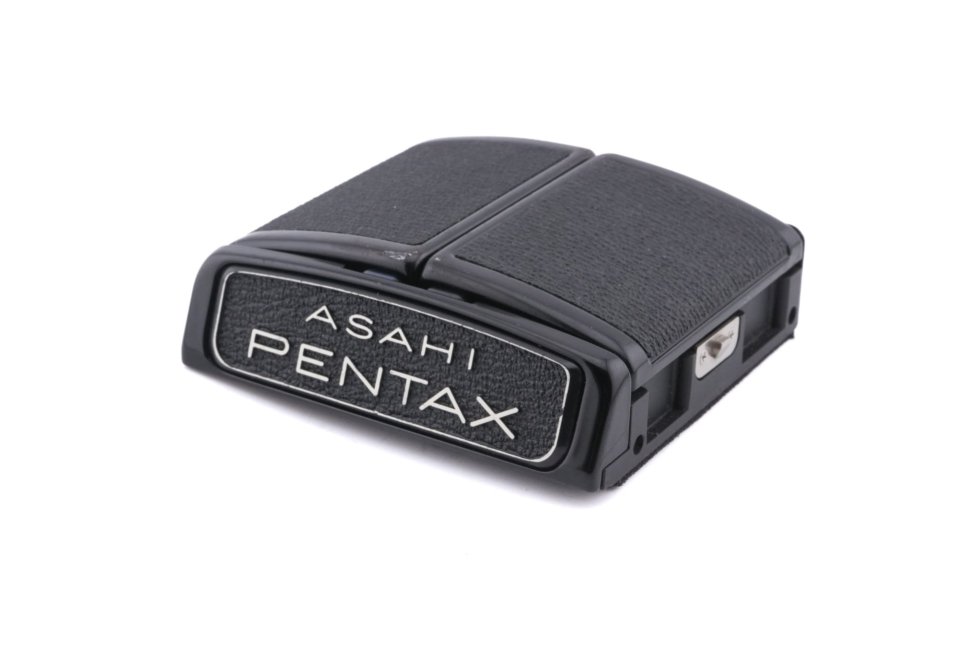 Waist level finder made for 6x7 120 SLRs by Pentax. All versions of the waist level finder will work on all versions of the 67 camera. Metal body available in black.