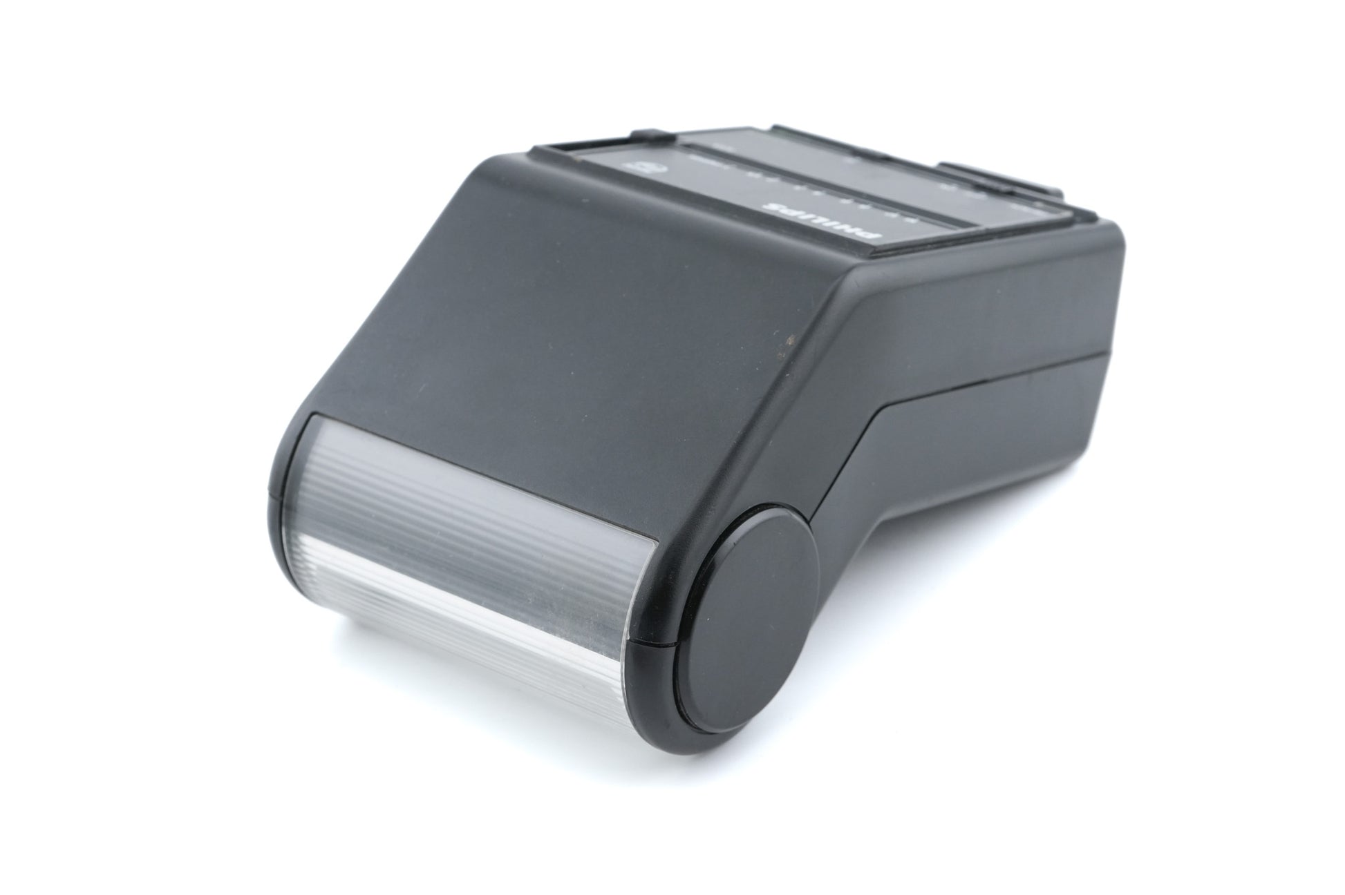 Medium-sized flash from Philips for all cameras with hot shoe or PC sync port connector. Has a single connector pin for manual flash control. Plastic body available in black.