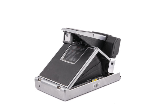 Autofocus SX-70 film foldable polaroid SLR camera released in 1970. Metal body available in black/silver.