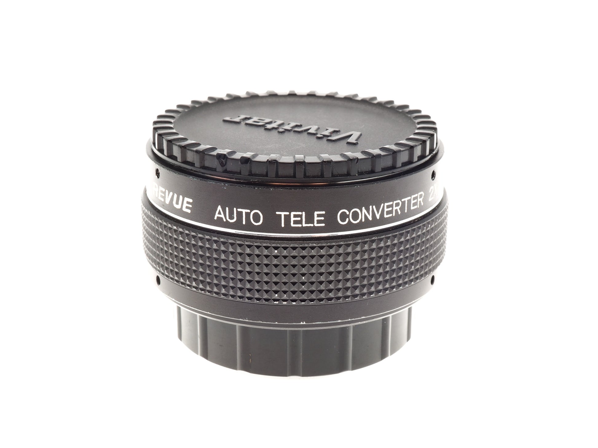 2x teleconverter made for M42 screw mount SLRs by Revue. Metal body available in black.