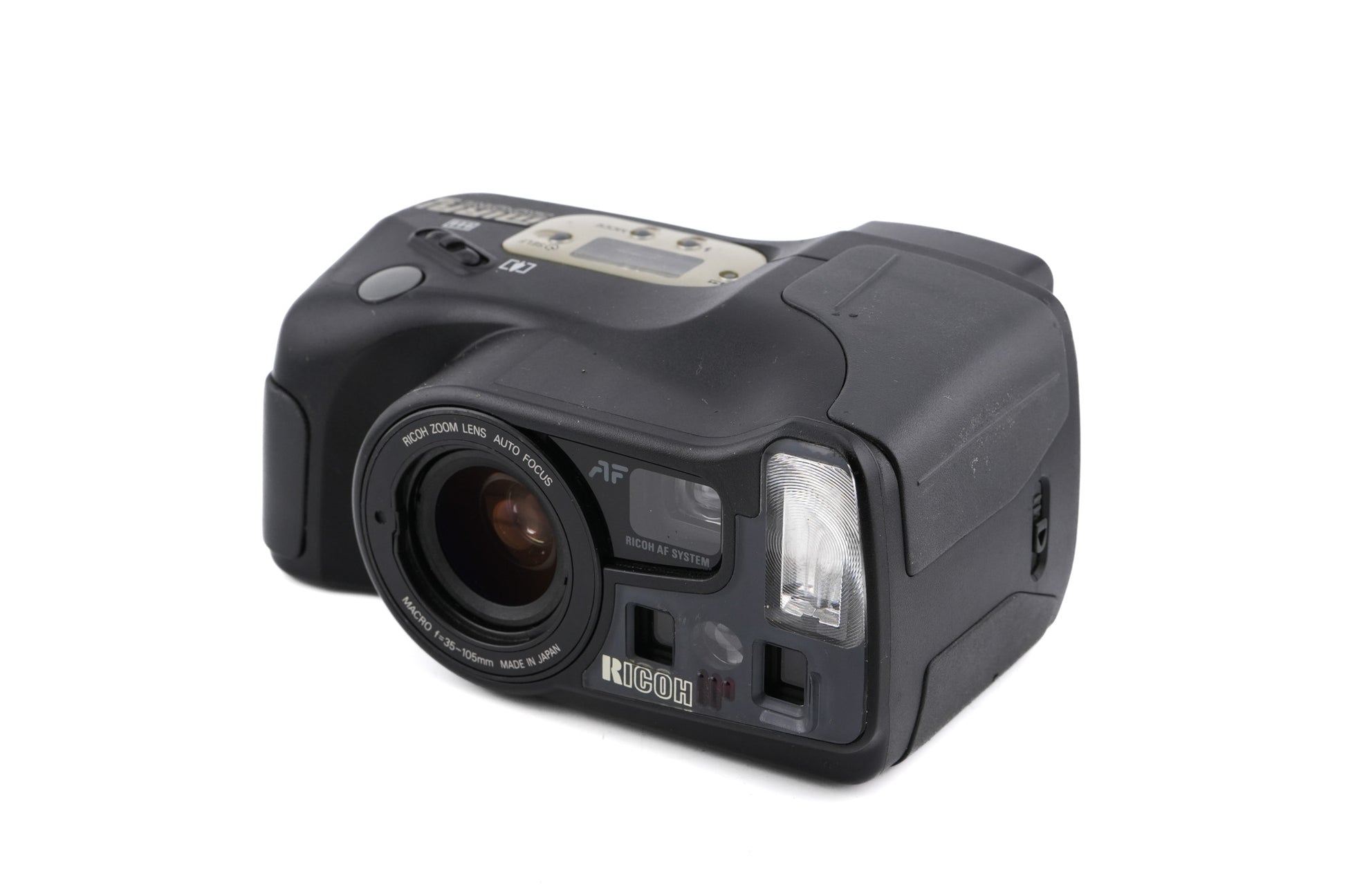 Autofocus 35mm bridge camera made by Ricoh in 1991. Plastic construction available in black.