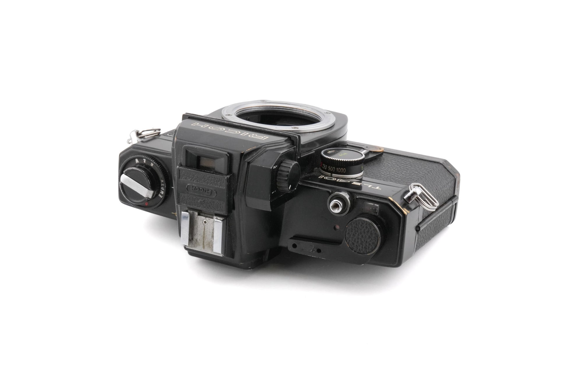 Manual focus 35mm SLR made by Ricoh. It features an additional chimney viewfinder on the top. Metal body available in black.