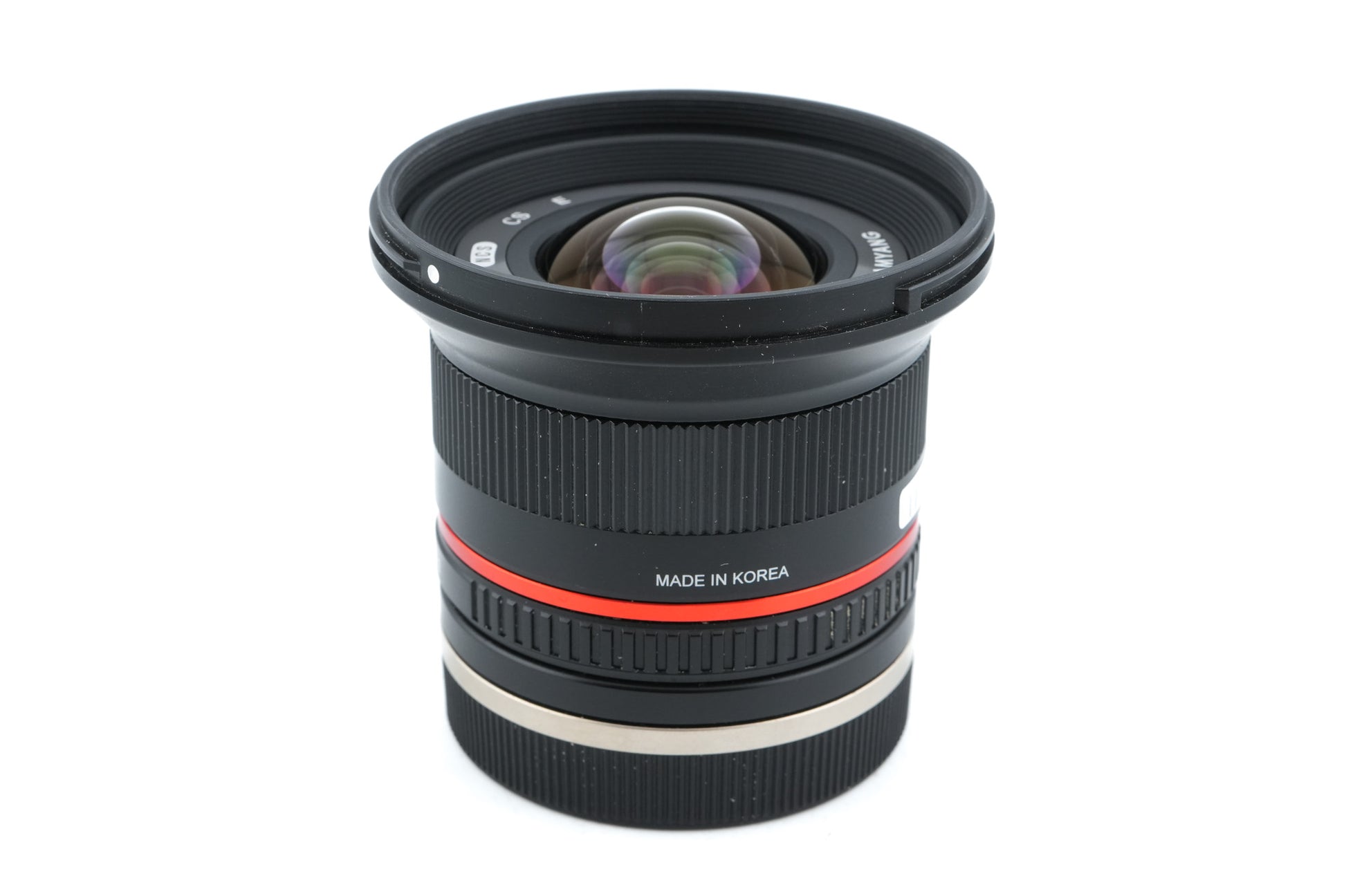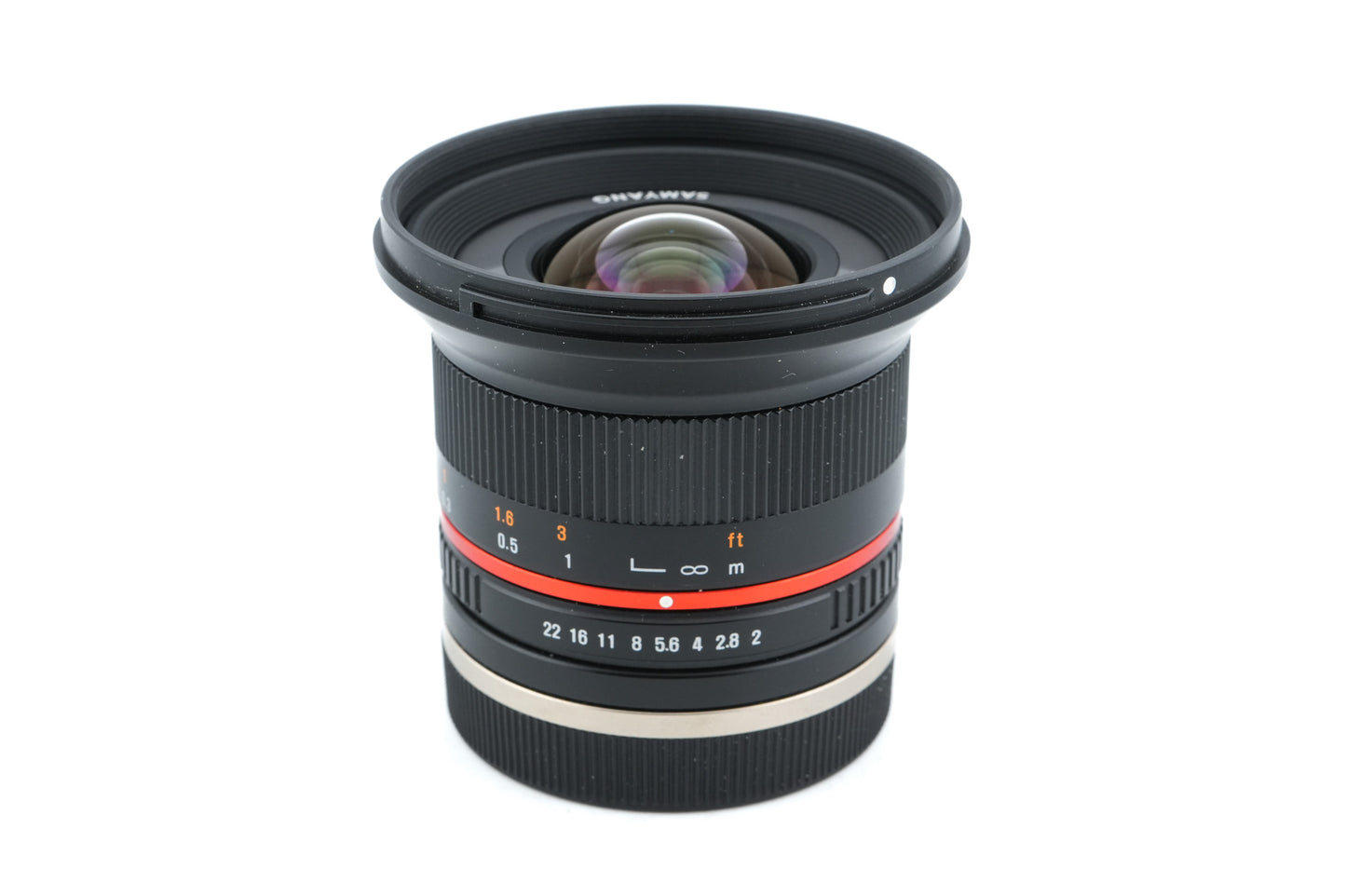 Manaul focus wide-angle lens for Sony E-mount mirrorless cameras made by Samyang. Metal and plastic body available in black and silver.