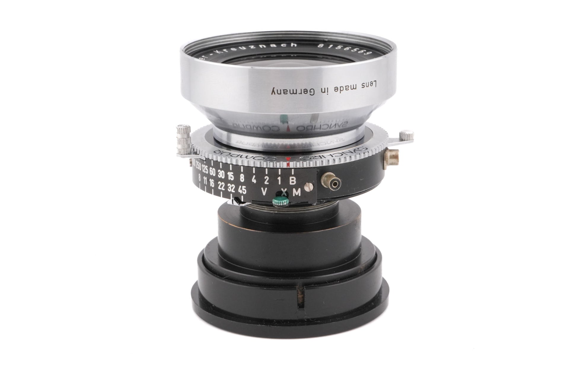 Wide angle lens made for large format systems by Schneider-Kreuznach. It gives the equivalent field of view to a 22mm lens on full frame/35mm (when mounted on 4x5). Metal body available in black.