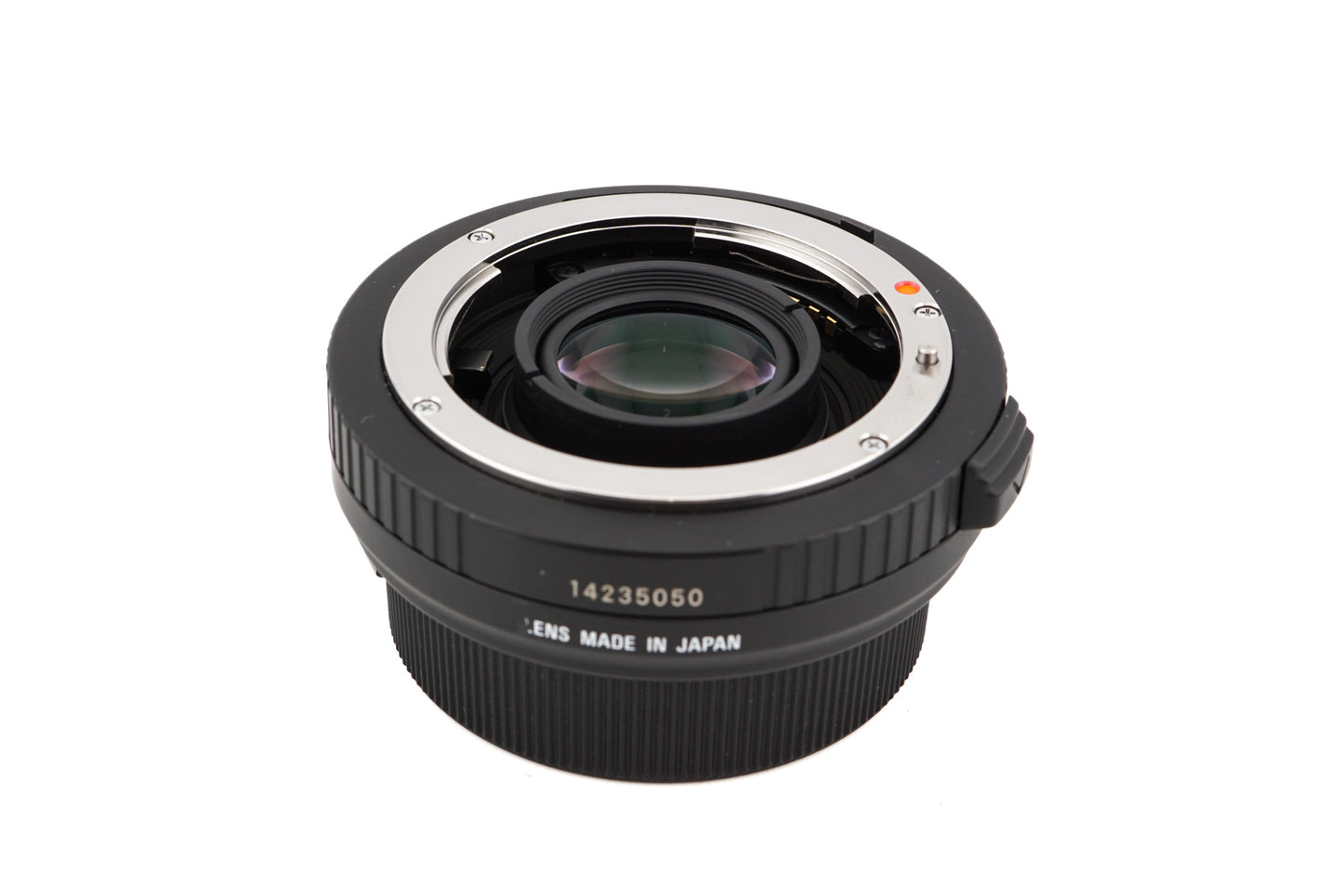 Teleconverter made for F-mount lenses and cameras introduced by Sigma. It multiplies the focal length of the lens by 1.4x at the cost of 1 EV of light transmission. It requires a body and lens that control the aperture and focus information electronically. Metal/plastic body available in black.