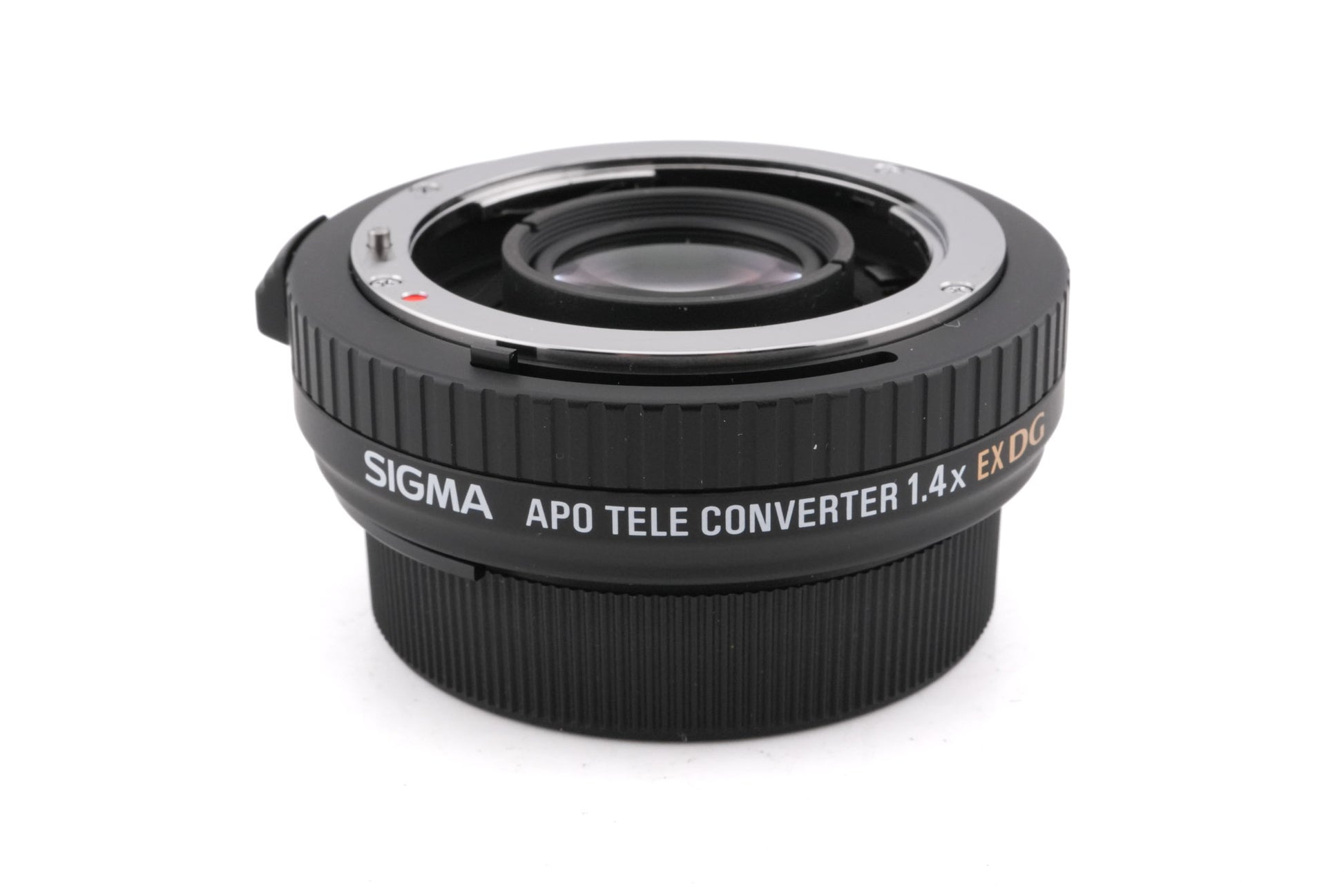 Teleconverter made for F-mount lenses and cameras introduced by Sigma. It multiplies the focal length of the lens by 1.4x at the cost of 1 EV of light transmission. It requires a body and lens that control the aperture and focus information electronically. Metal/plastic body available in black.