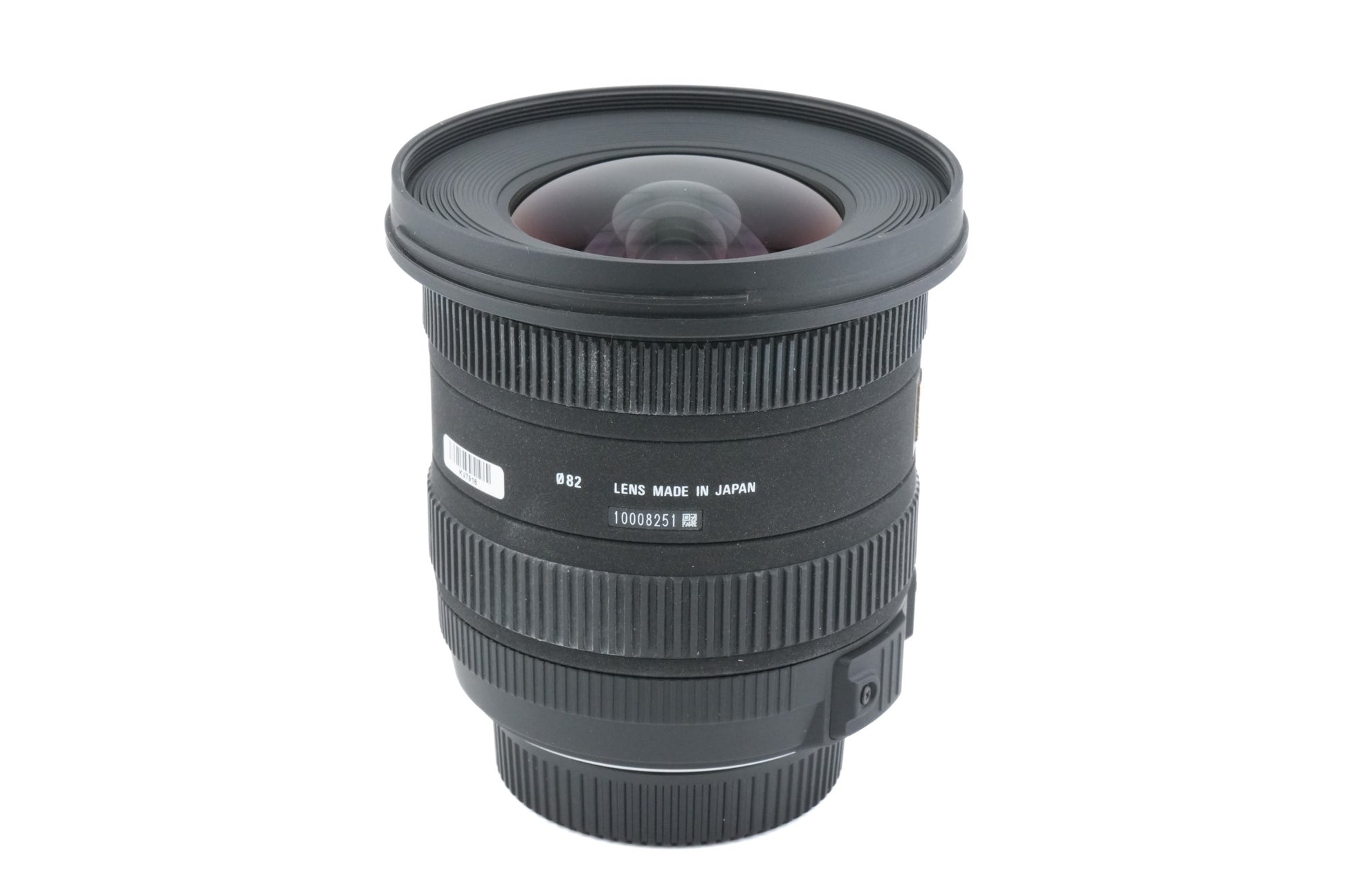 Autofocus wide-angle zoom lens made for Nikon DX-mount SLRs by Sigma. It uses Sigma's High-Speed Motor (HSM) for autofocus. The lens gives the equivalent field of view to a 15-30mm lens on full frame/35mm. Plastic body available in black.