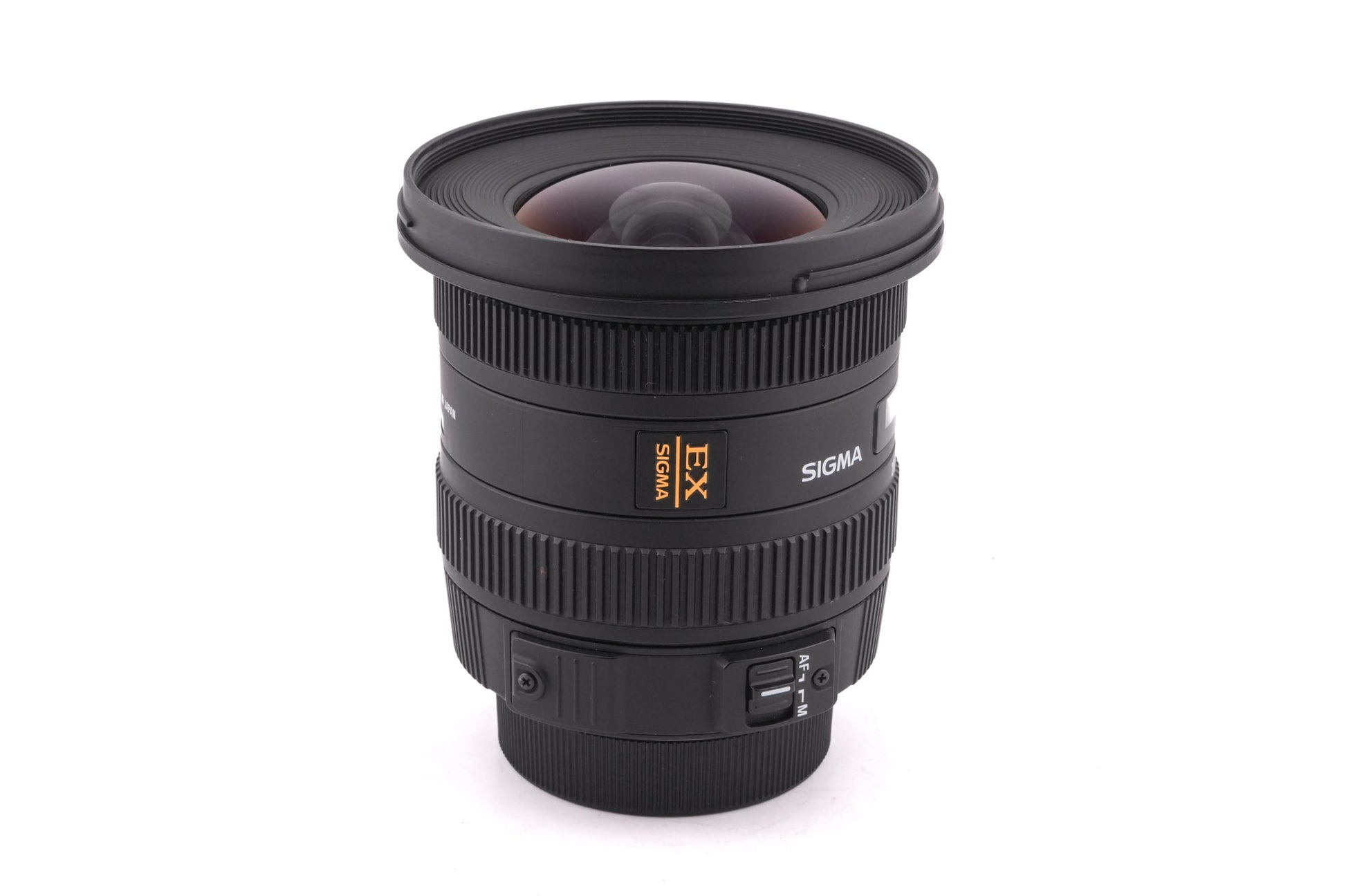 Autofocus wide-angle zoom lens made for Nikon DX-mount SLRs by Sigma. It uses Sigma's High-Speed Motor (HSM) for autofocus. The lens gives the equivalent field of view to a 15-30mm lens on full frame/35mm. Plastic body available in black.