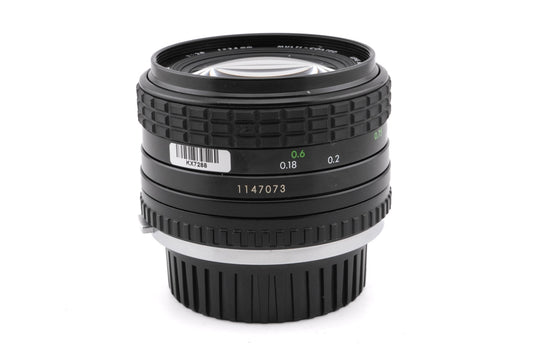 Manual focus wide-angle lens for OM-mount (D)SLR cameras introduced by Sigma. The lens is capable of a 1:4 magnification ratio. It has half-stop aperture clicks throughout the range. Metal and plastic body available in black.