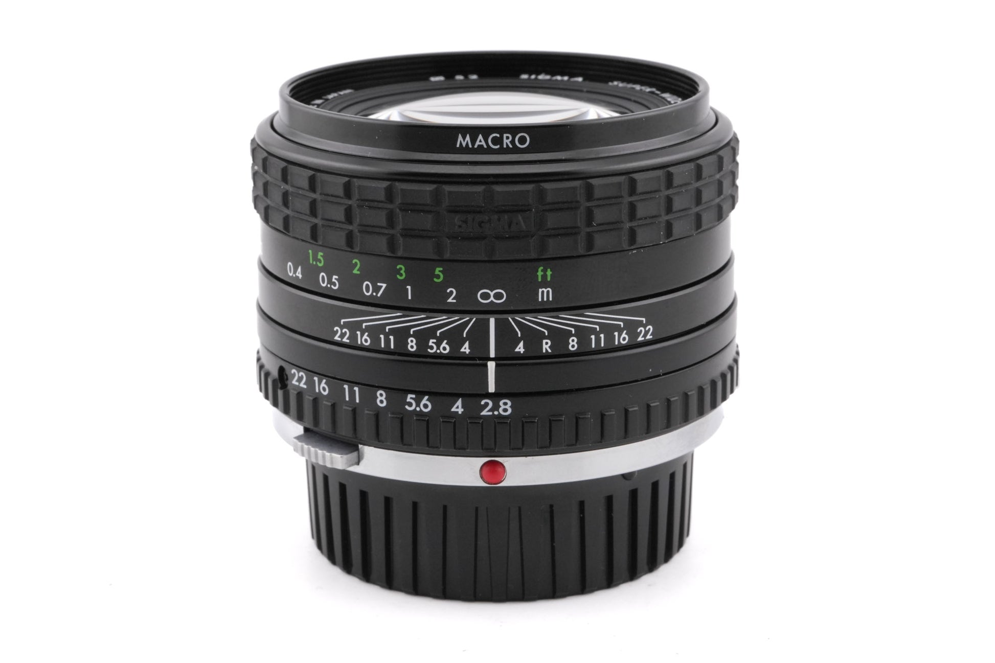 Manual focus wide-angle lens for OM-mount (D)SLR cameras introduced by Sigma. The lens is capable of a 1:4 magnification ratio. It has half-stop aperture clicks throughout the range. Metal and plastic body available in black.