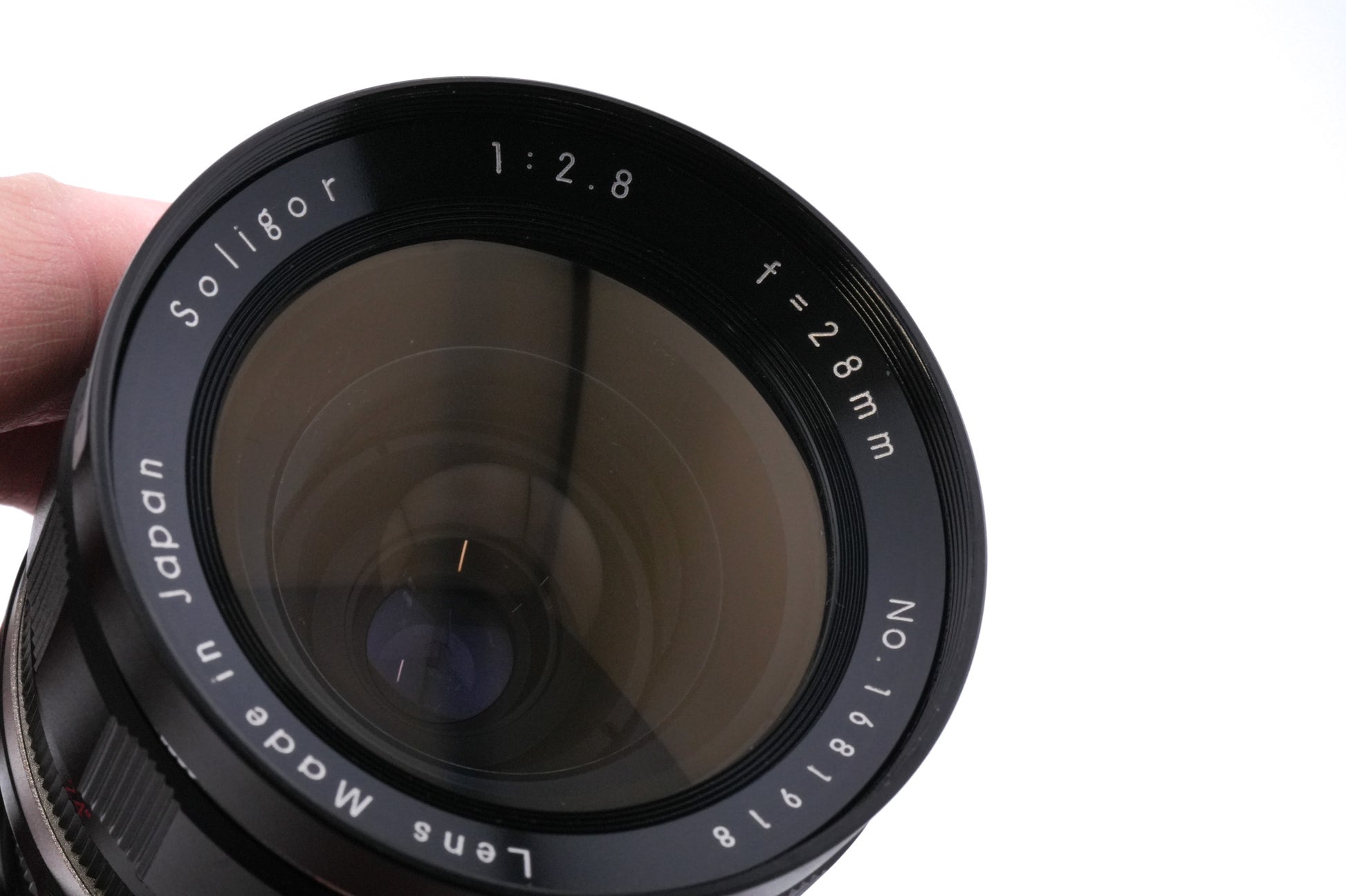 Manual focus wide-angle lens made for the interchangeable T2 screw mount system by Soligor. Pre-set aperture system. At least two known variations exist, with 0.3m and 0.45m close focus capabilities respectively. Metal body in black and silver finish.