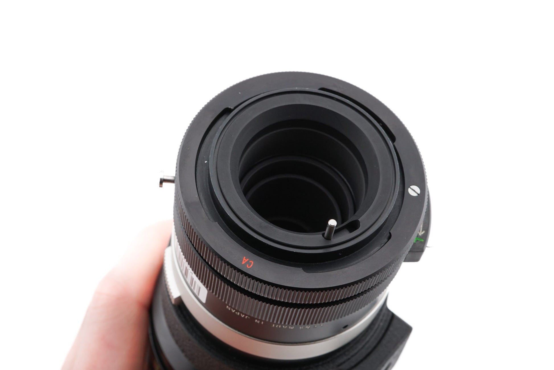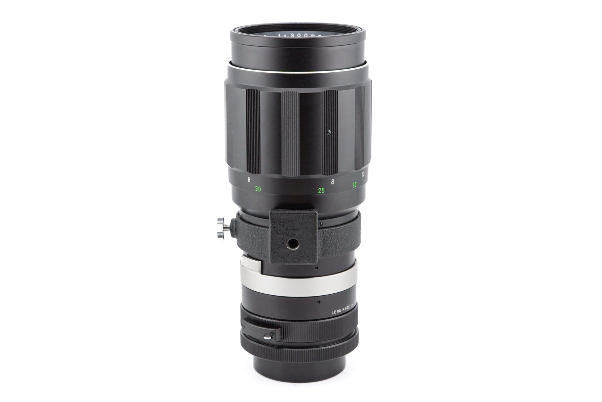 Manual focus telephoto prime lens made for Canon FL mount SLR cameras by Soligot. Comes with a built-in lens hood and tripod collar. Metal body available in black.