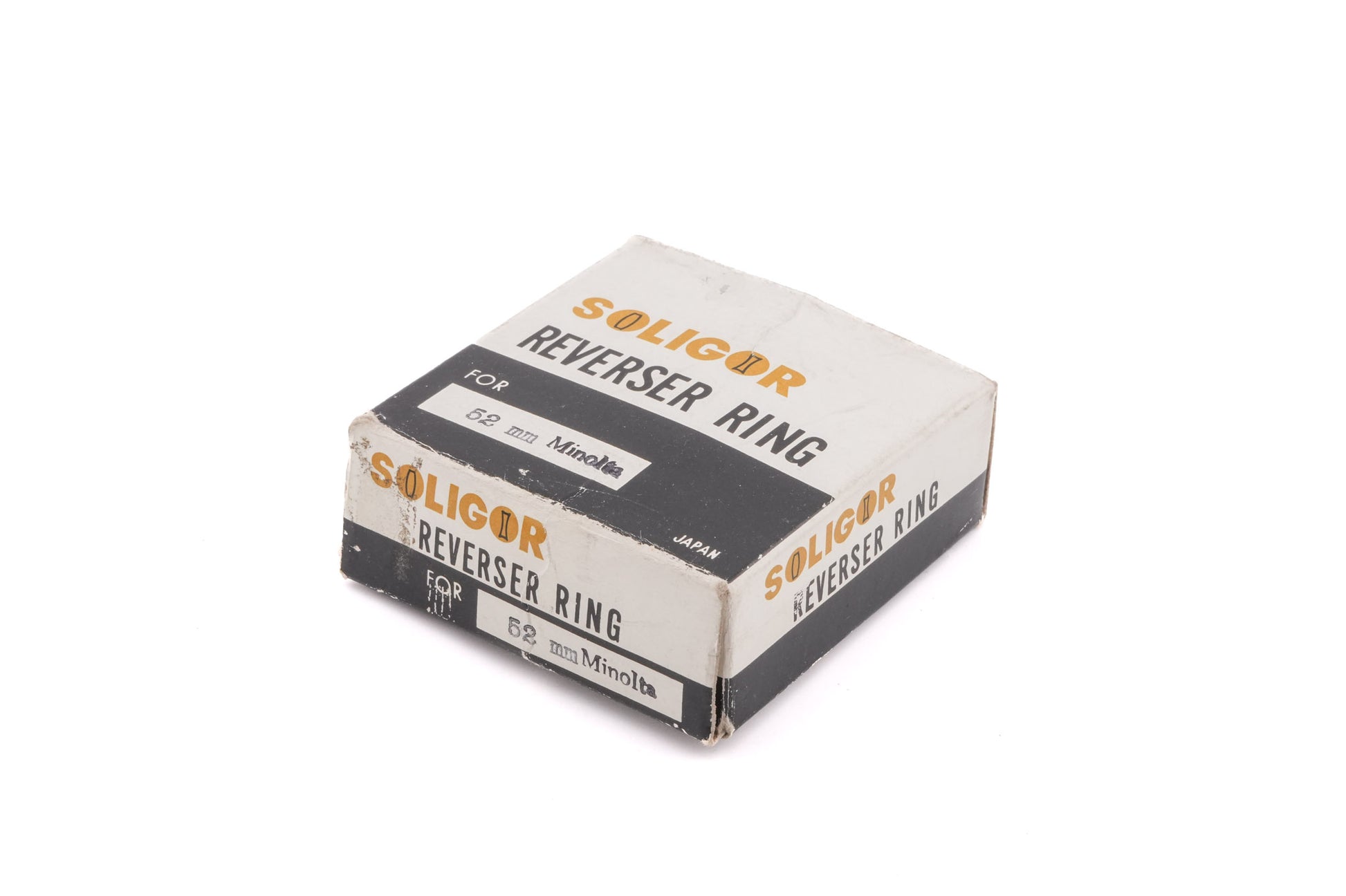 Reverse mounting ring made by Soligor. It allows lenses with 52mm filter thread to be reverse mounted on MD-mount cameras. Metal body available in black.