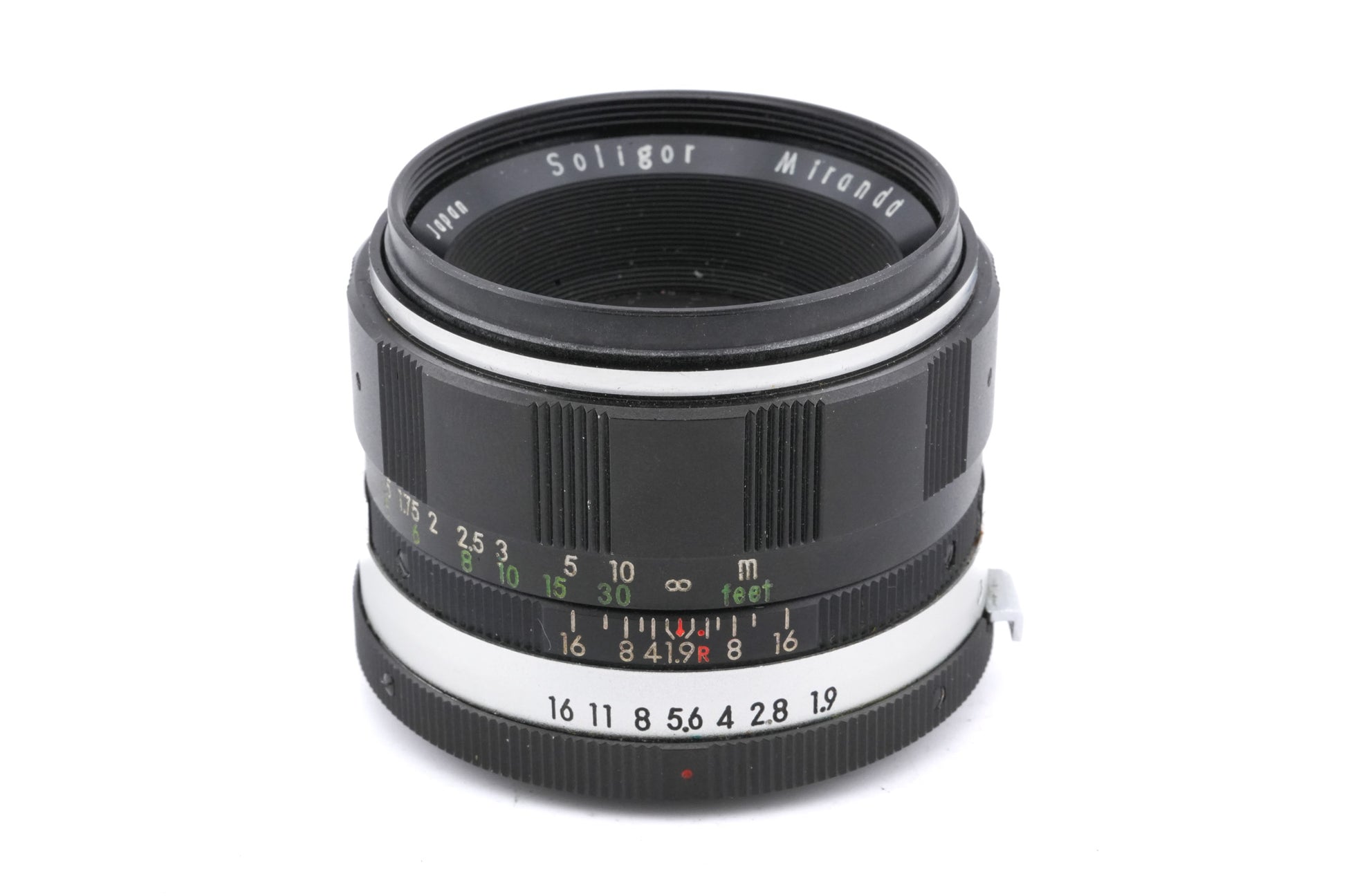 Manual focus standard lens made for Miranda mount SLRs by Soligor. Metal body available in black.