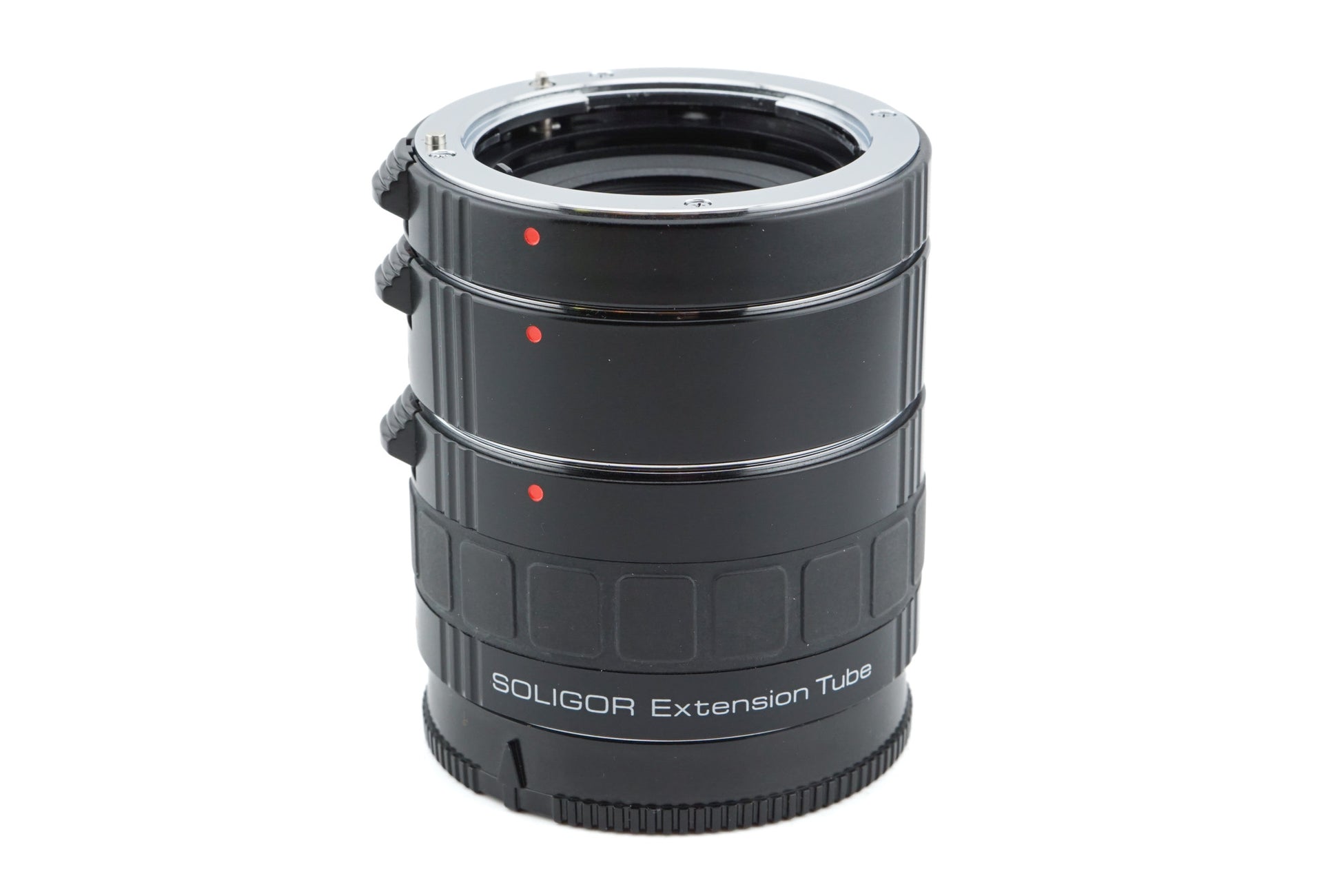 Extension tubes with electronic contacts. The tubes can be used separately or together and provide an extension of 12mm, 20mm and 36mm.