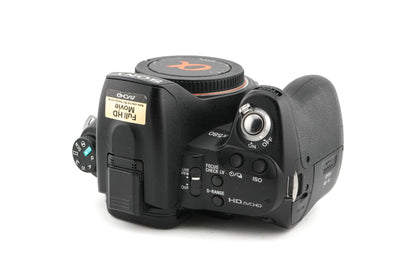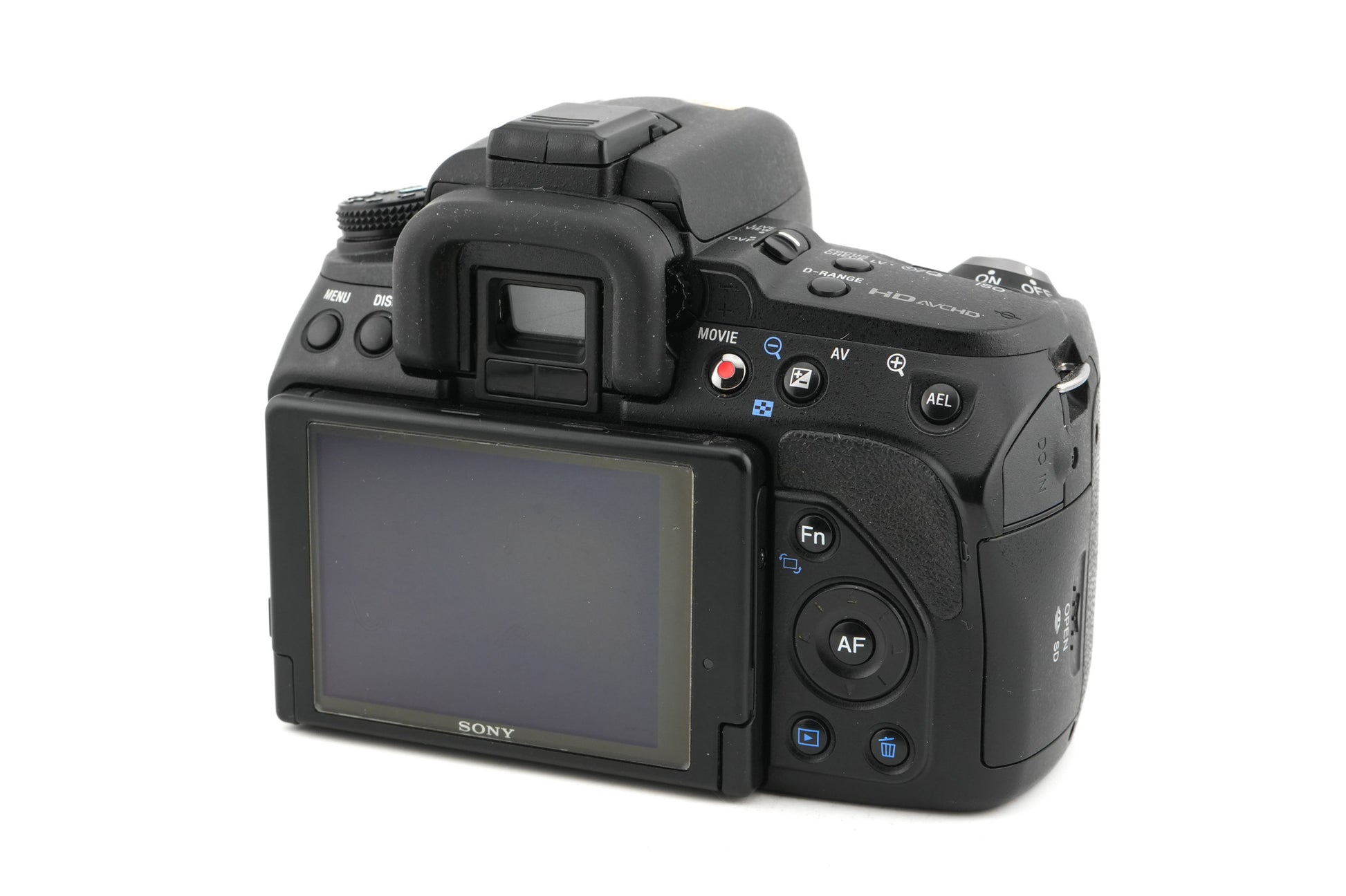 Autofocus digital A-mount DSLR camera released by Sony in 2011. Plastic body available in black.