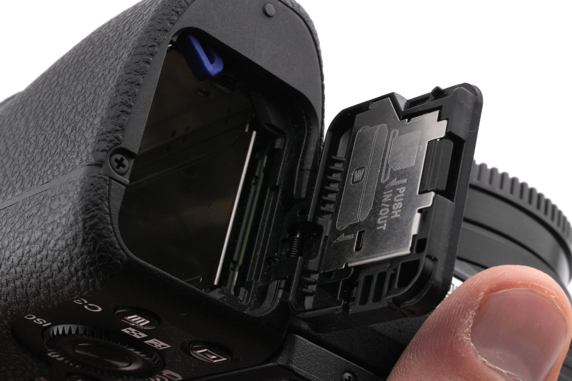 Autofocus E-mount digital mirrorless camera released by Sony in 2016. It has a 3” tilting touch screen, 5-axis in-body image stabilization (SteadyShot), and 4K video recording. Metal body available in black.