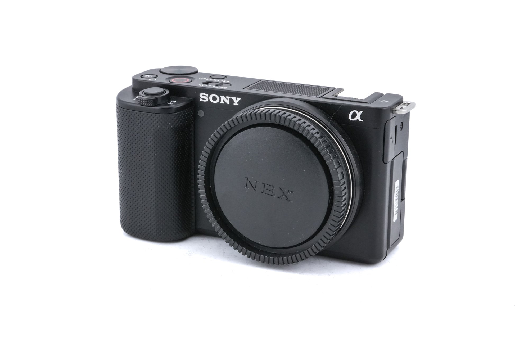 Autofocus APS-C E-mount digital mirrorless camera released by Sony in 2021. It was designed with vlogging in mind and focuses heavily on video features. It has a built-in 3-capsule microphone, a 3" articulating rear touch LCD, and records 4K video at 24 fps. It can use Sony's Memory Stick Pro Duo as well as standard SD cards. Metal body and plastic available in black.