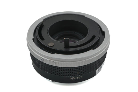 Tele converter made by Tamron. Multiplies focal length by two. Reduces the speed of the lens by two stops. Metal body available in black.