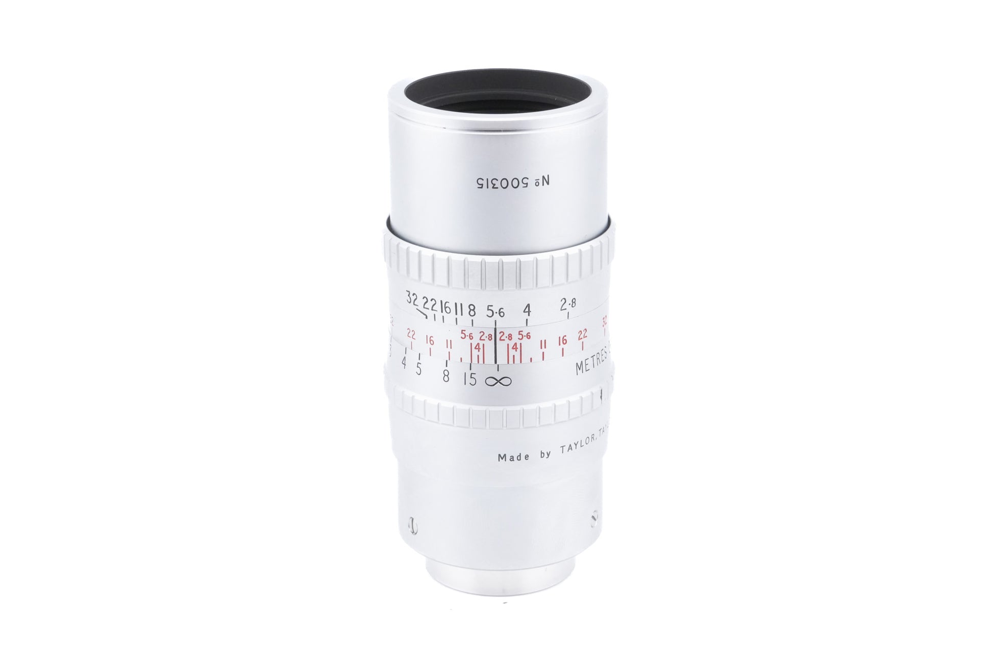 Manual focus 16mm movie camera lens made by Taylor & Hobson. Metal body available in silver.