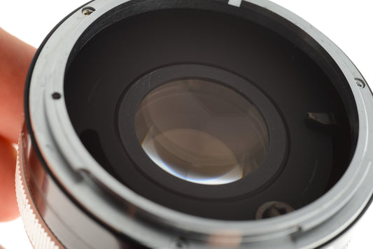 Tele converter made by Teleplus for Canon FD. Multiplies focal length by two. Metal body available in black.